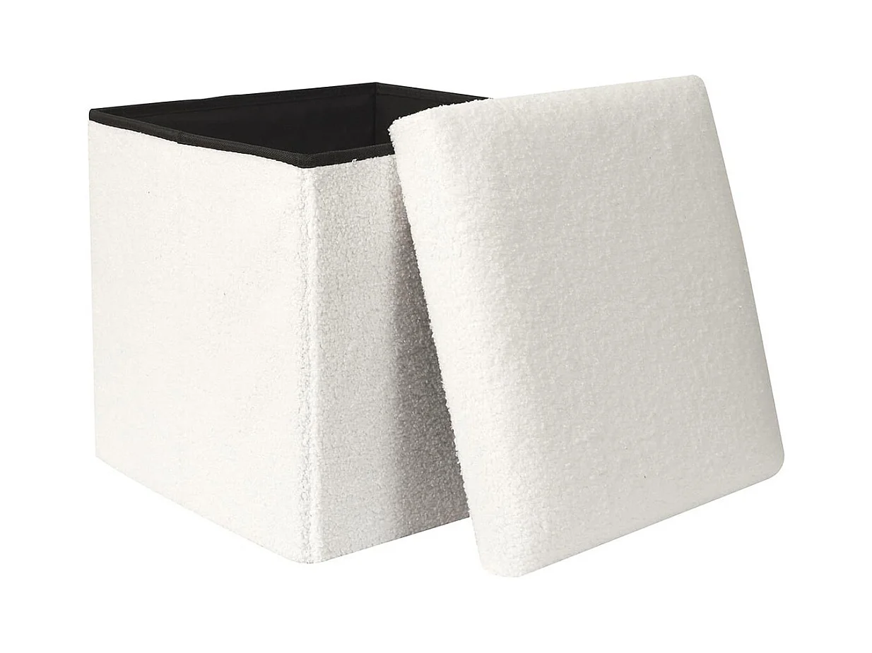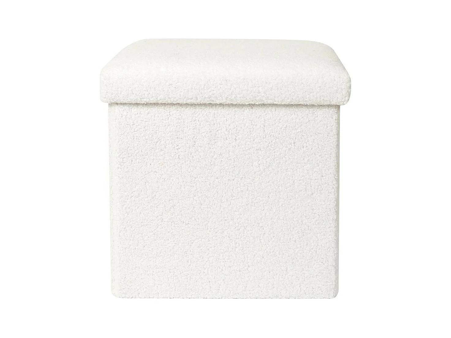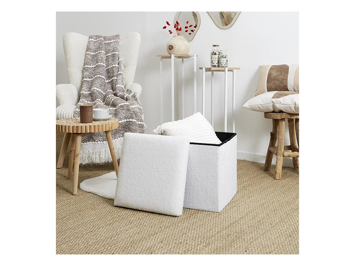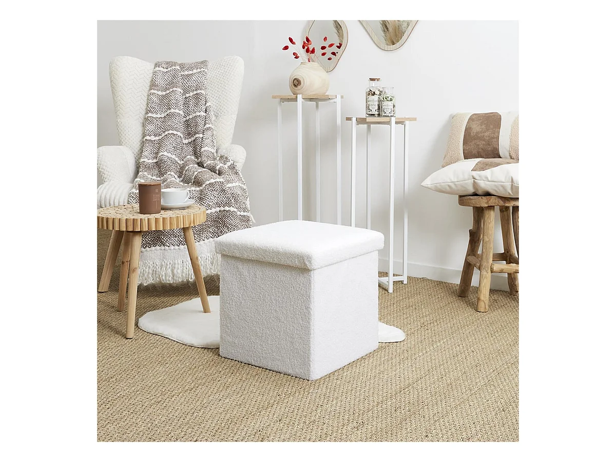 FLOKI - Coffre Pouf Pliable Blanc Tissu Bouclettes