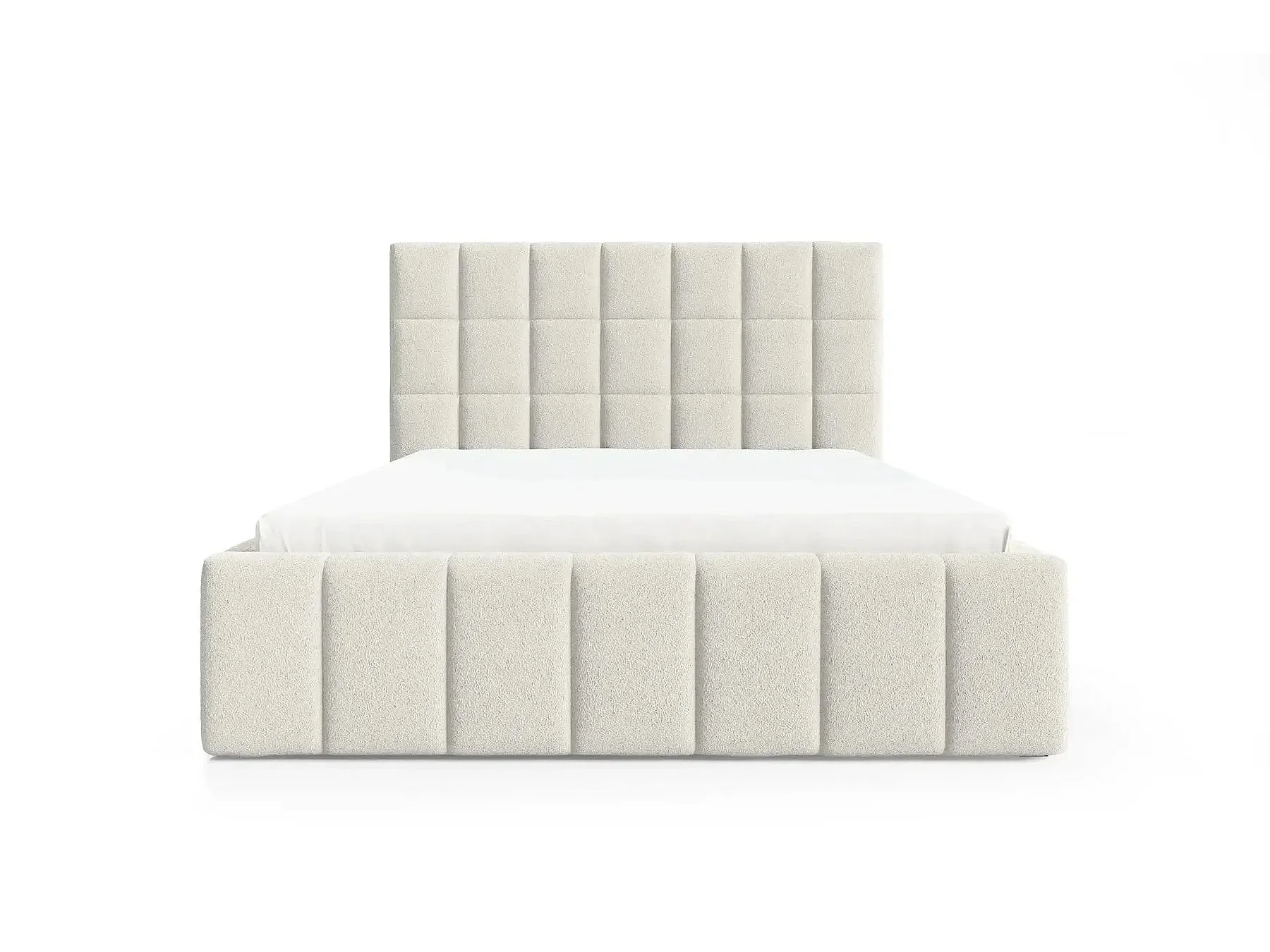 FLORENCE - Lit coffre tissu chenille 140x200cm - Blanc