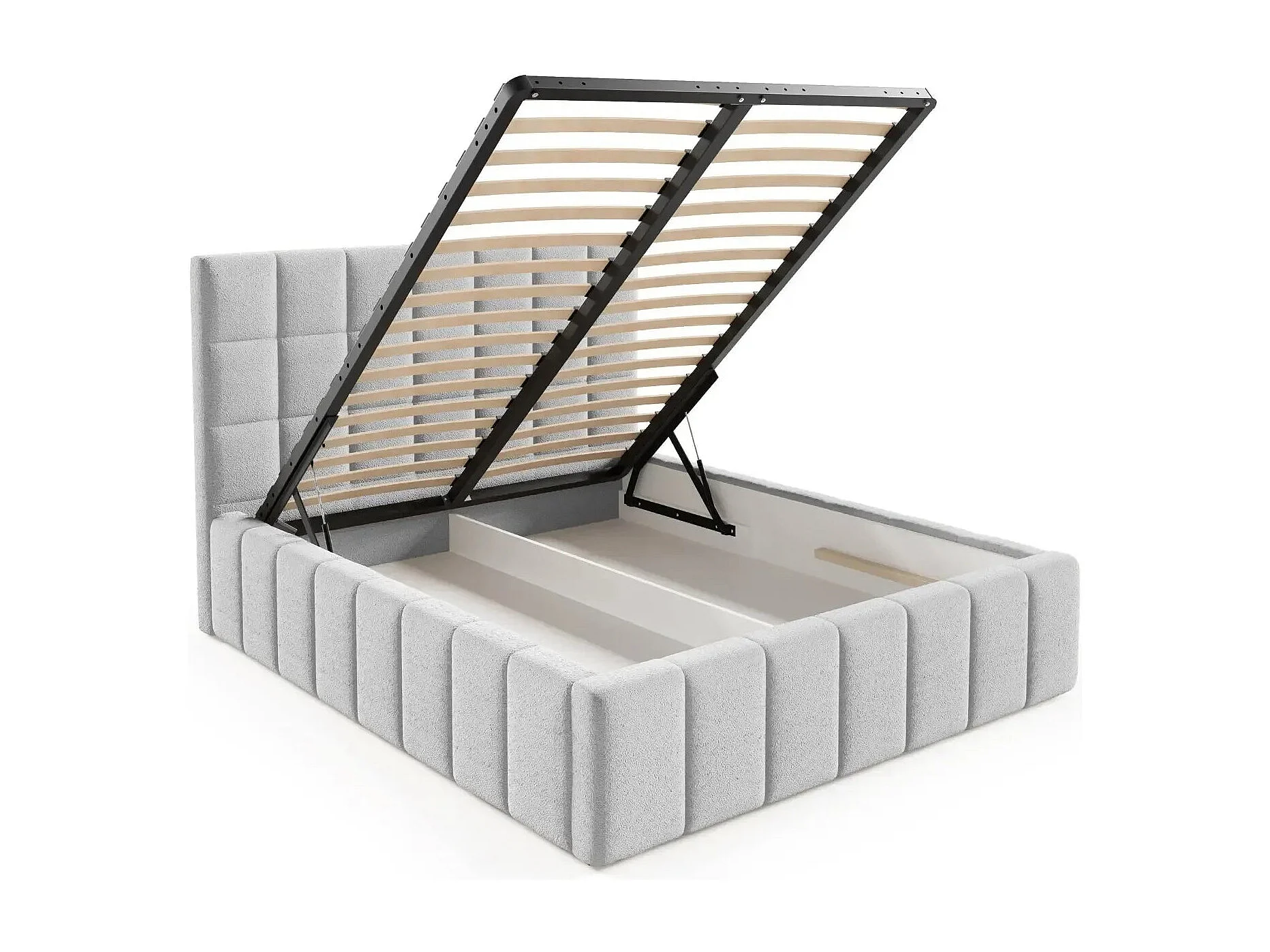 FLORENCE - Lit coffre tissu chenille 140x200cm - Gris clair