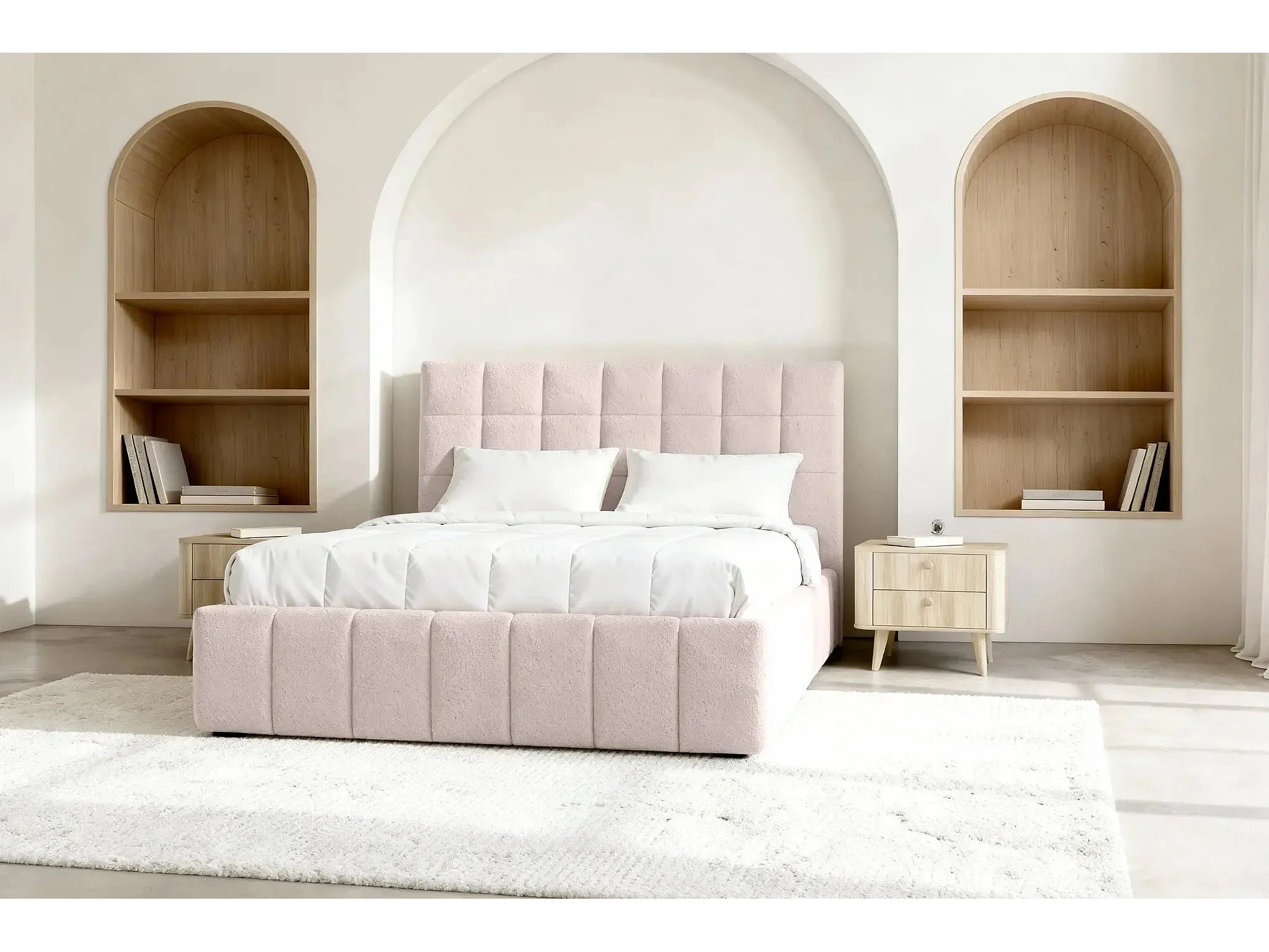 FLORENCE - Lit coffre tissu chenille 140x200cm - Rose