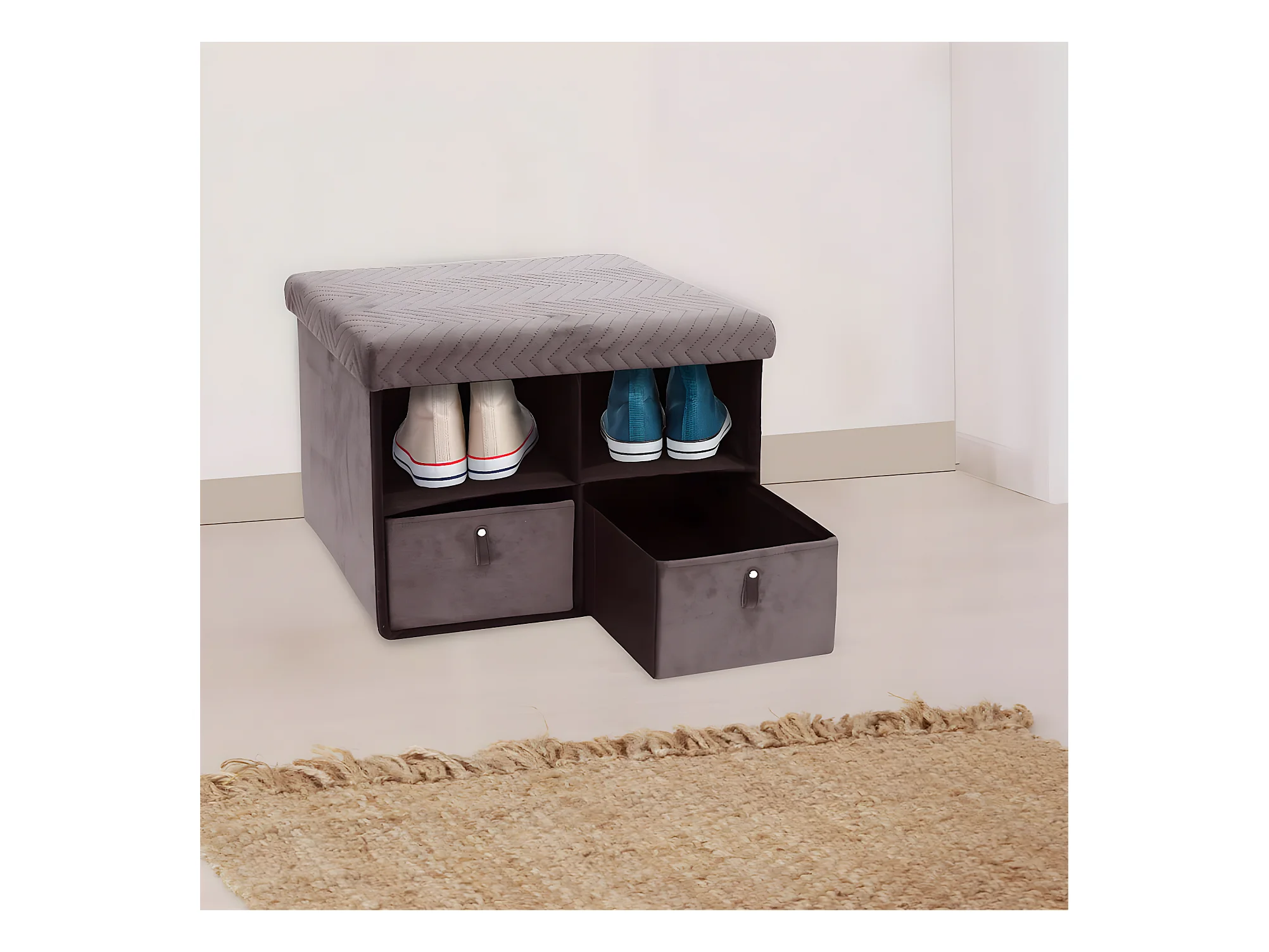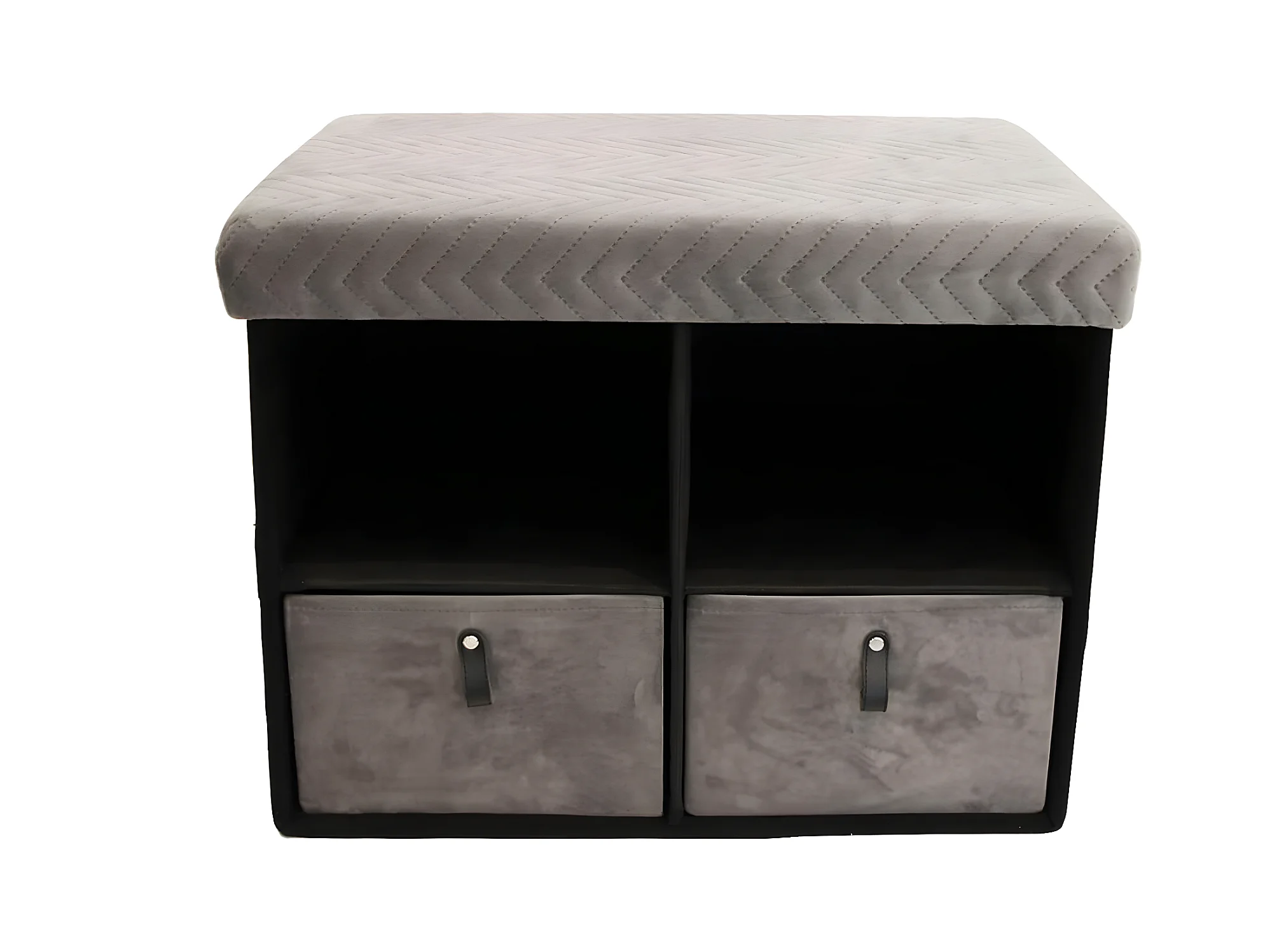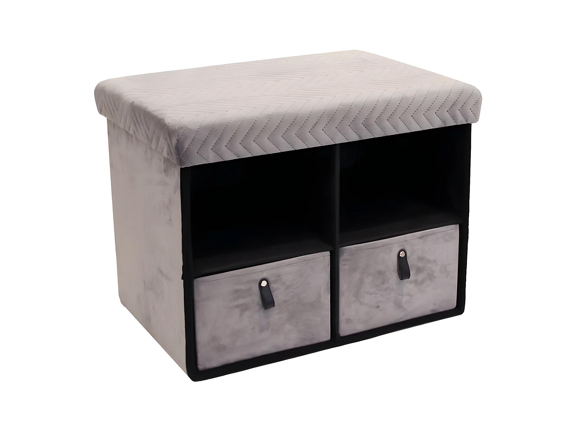 FLOY - Banc Pliable Velours Gris Clair Avec Tiroirs