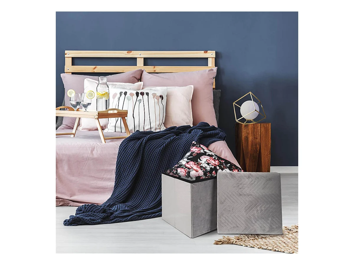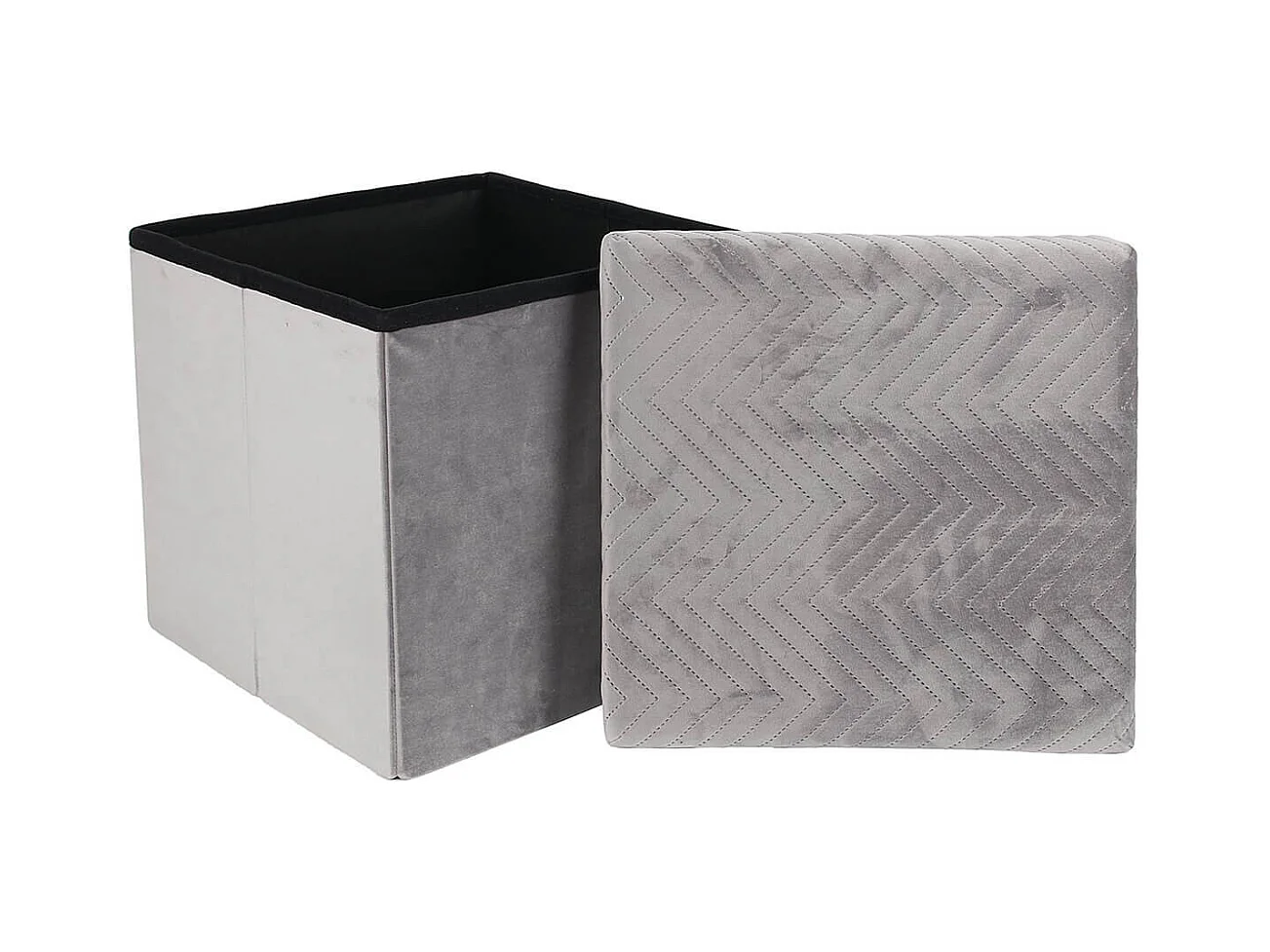 FLOY - Coffre Pouf Pliable Velours Gris Clair
