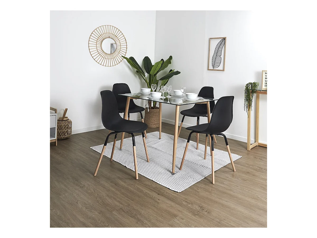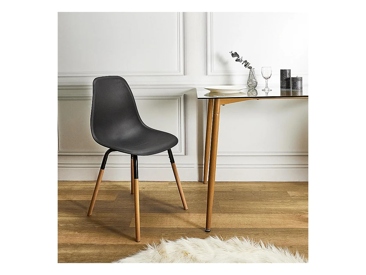 FLUK - Lot de 4 Chaises Polypropylène Noir et Bois