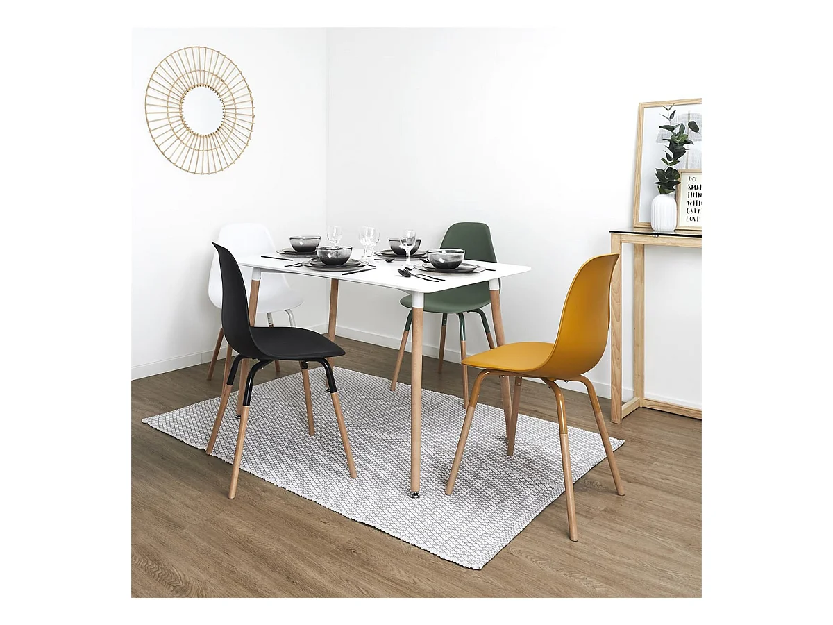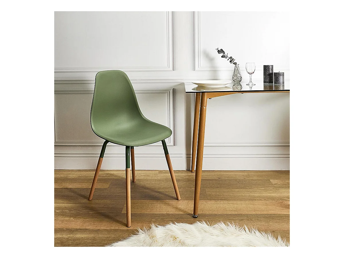 FLUK - Lot de 4 Chaises Polypropylène Vert et Bois