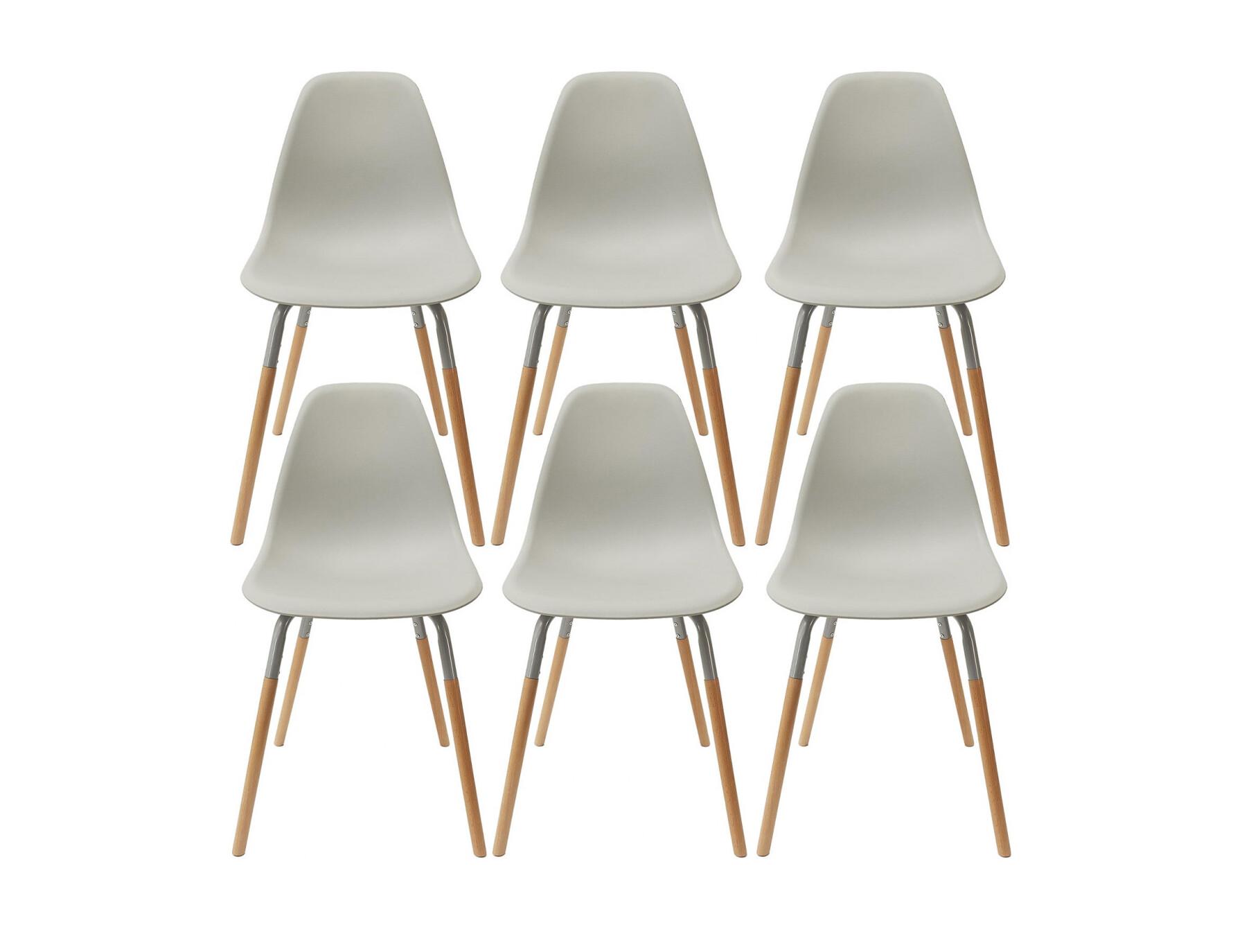 FLUK - Lot de 6 Chaises Polypropylène Gris et Bois