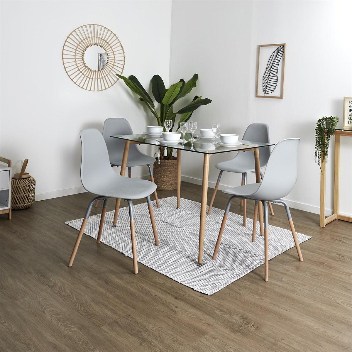 Lot de 6 Chaises Polypropylène Gris et Bois de la gamme Fluk.