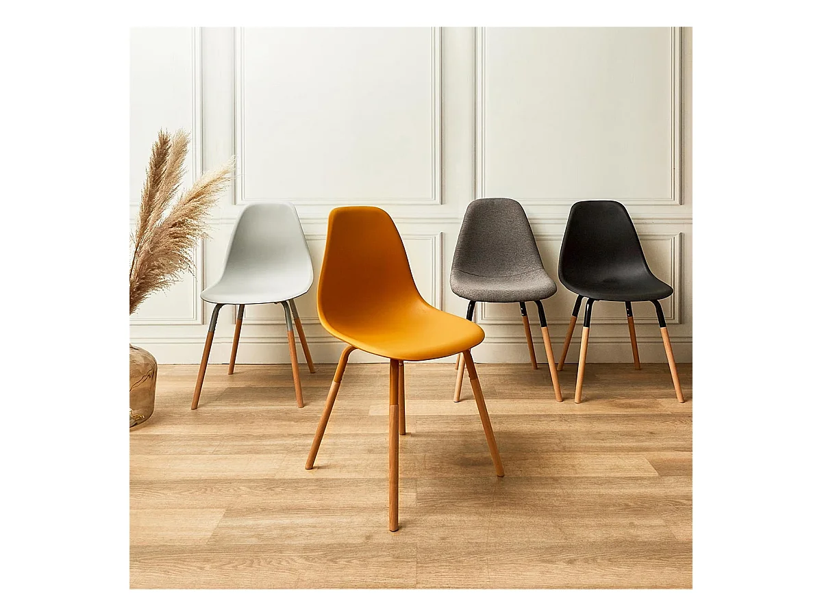 FLUK - Lot de 6 Chaises Polypropylène Jaune et Bois