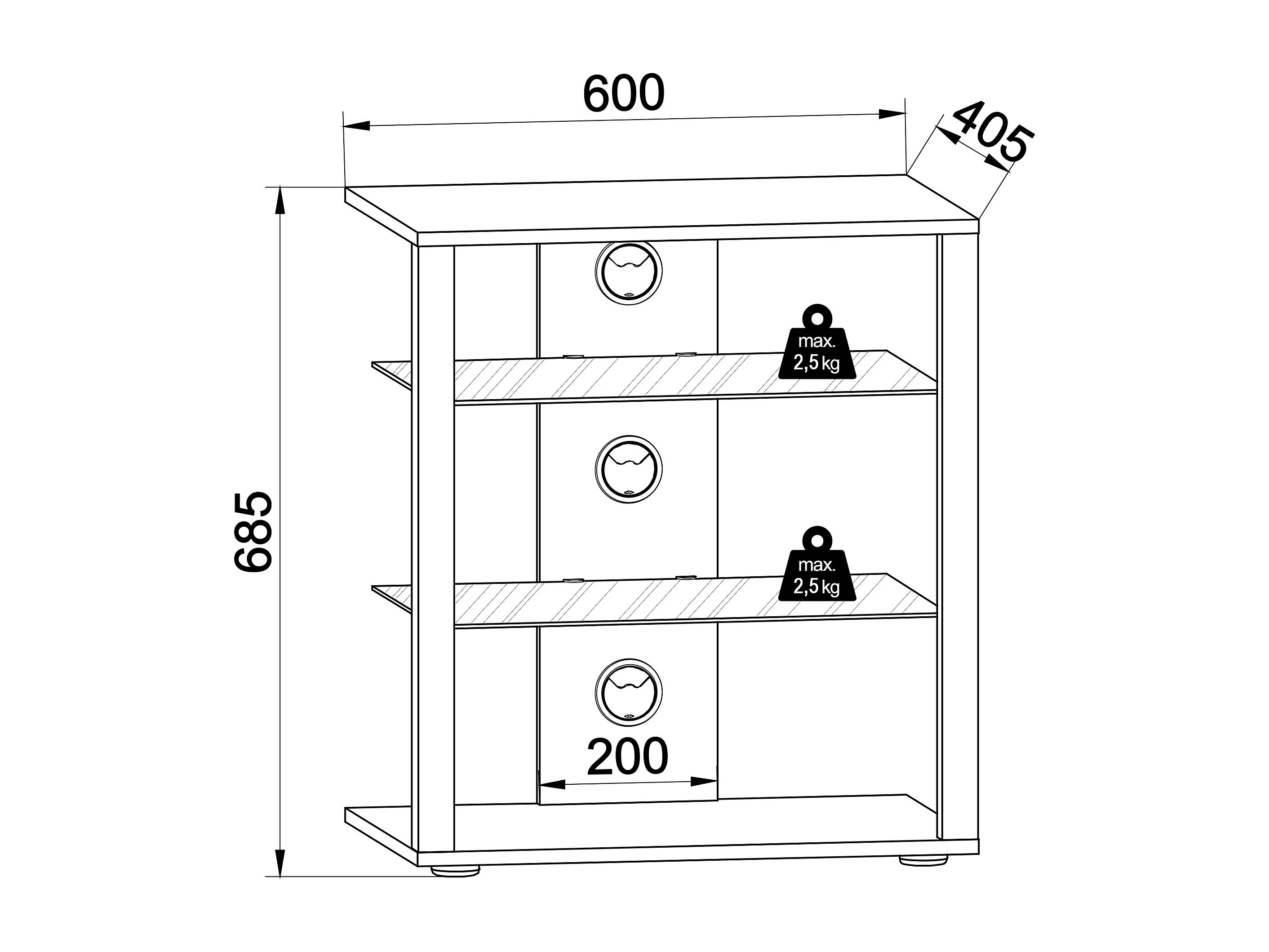 Hifi Furniture Folas Black H. 70 x W. 60 x D. 41 cm