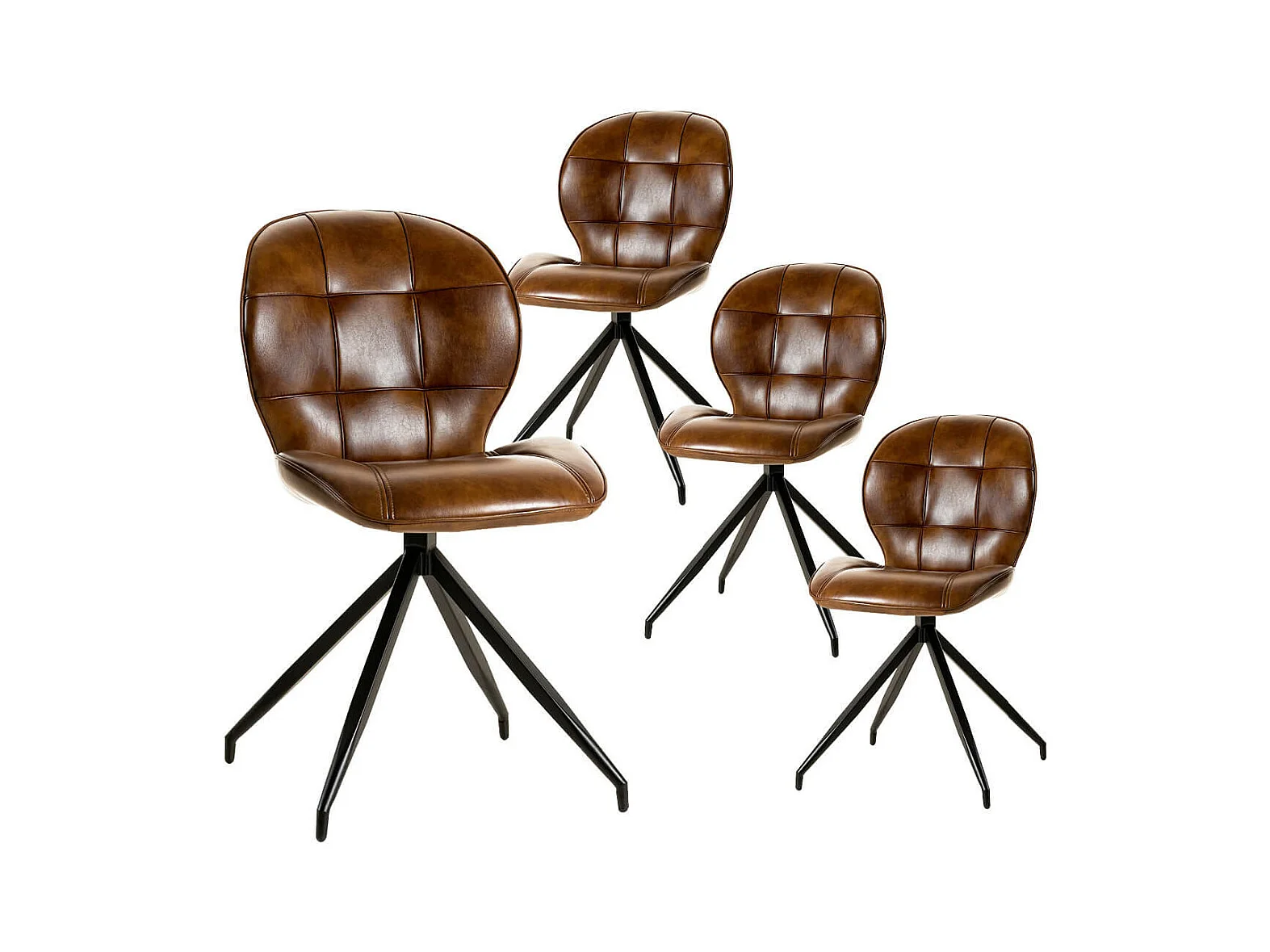 FOLY - Lot de 4 Chaises Simili Cuir Vieilli Marron
