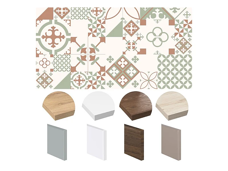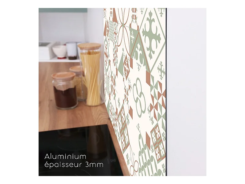Fond de hotte adhésif en aluminium effet carreaux de ciment vert - 70x90 cm