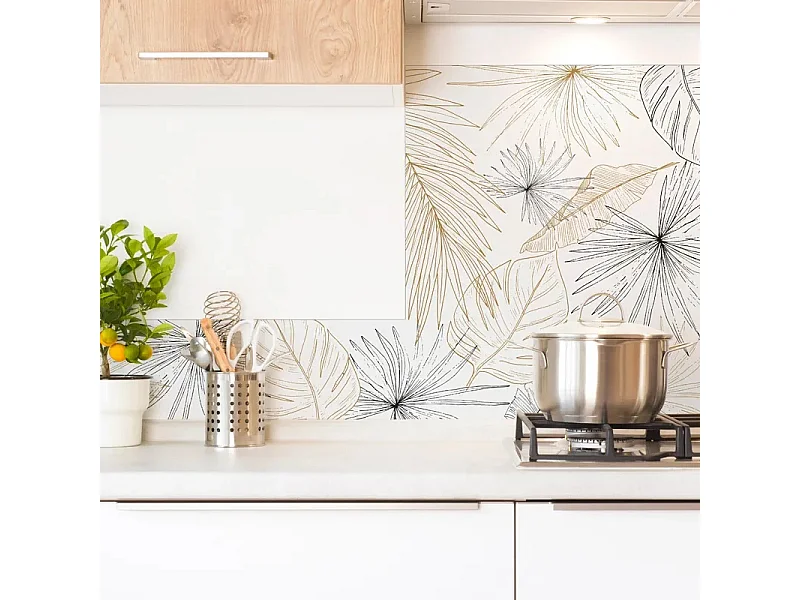 Fond de hotte en aluminium - motif floral noir et doré - 70x60 cm