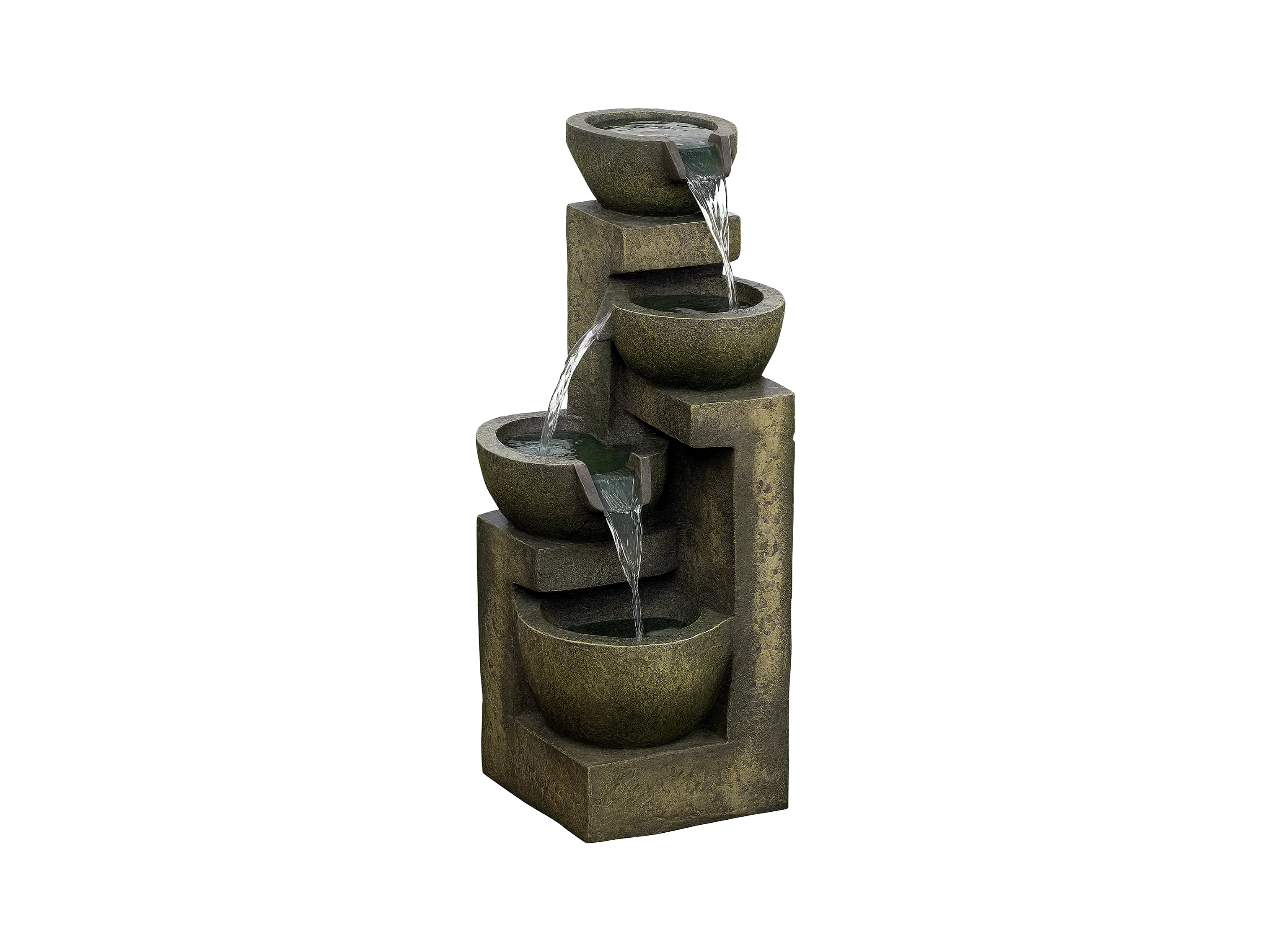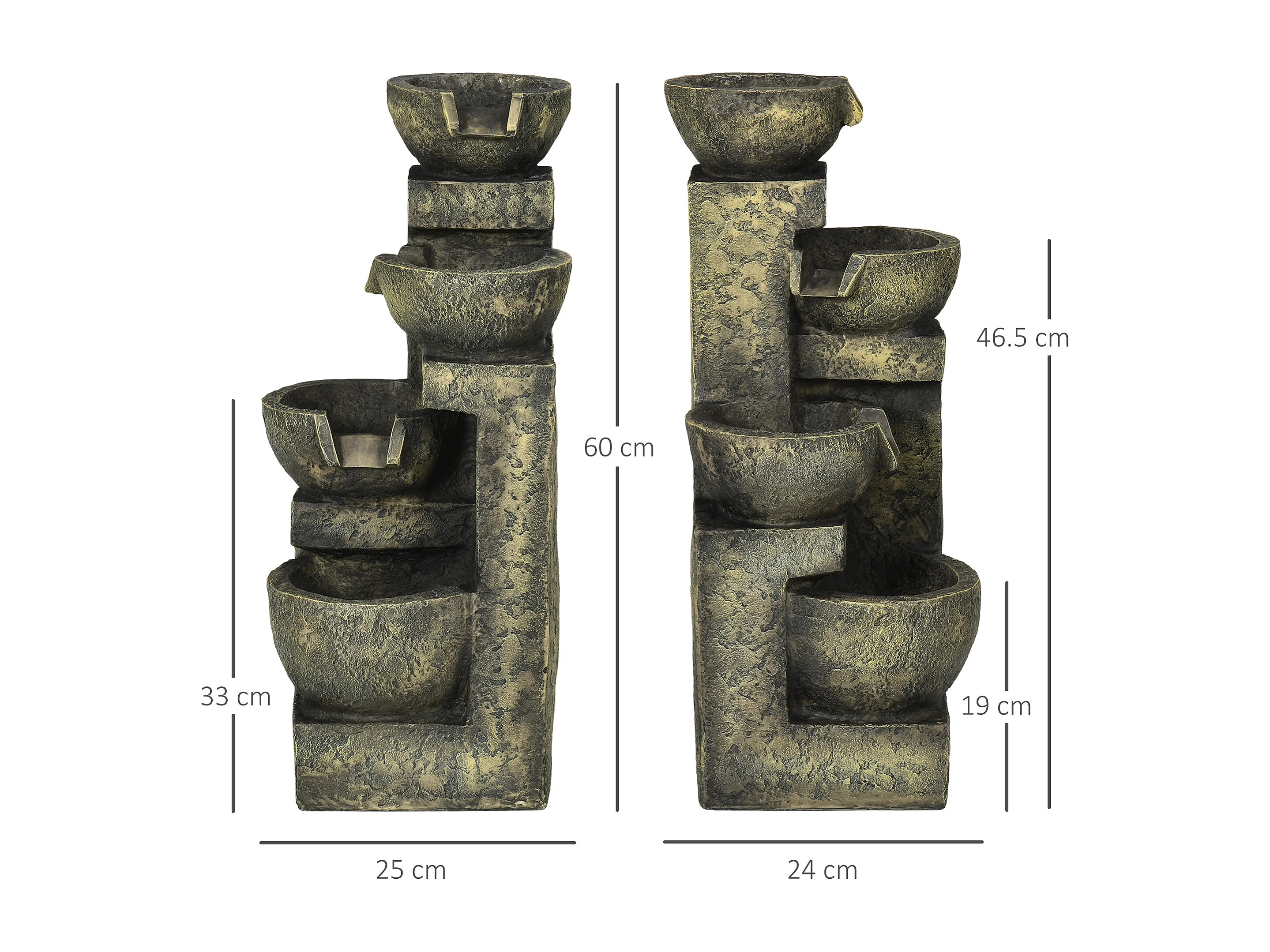 Fontaine de jardin cascade 4 pots débit réglable pompe à eau submersible incluse résine noir bronze vieilli