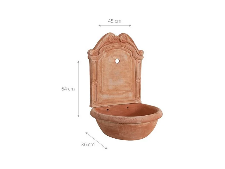 BISCOTTINI Fontaine Murale - Finition Terre Cuite Toscane - Jardin - Mobilier Mural - Terrasse - Décorative - 45x36x64 cm
