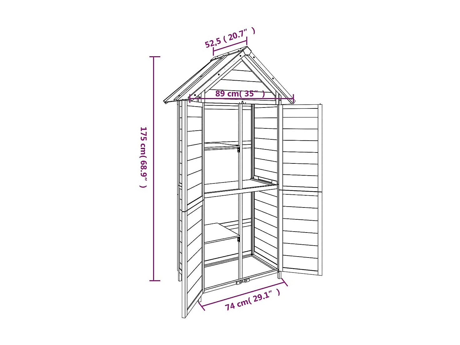 Fontana Abri à outils de jardin gris 89x52,5x175 cm bois massif pin
