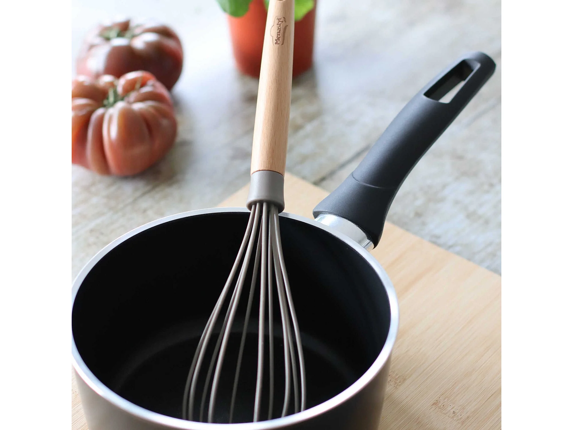 Menastyl - Fouet Eliott En Silicone Avec Manche En Bois De Hetre