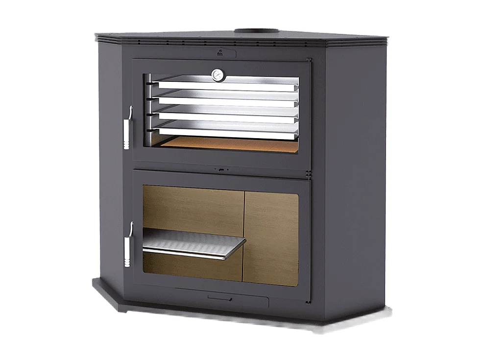 Four-poêle à bois de coin en acier - Domotifeu - Intérieur en vermiculite
