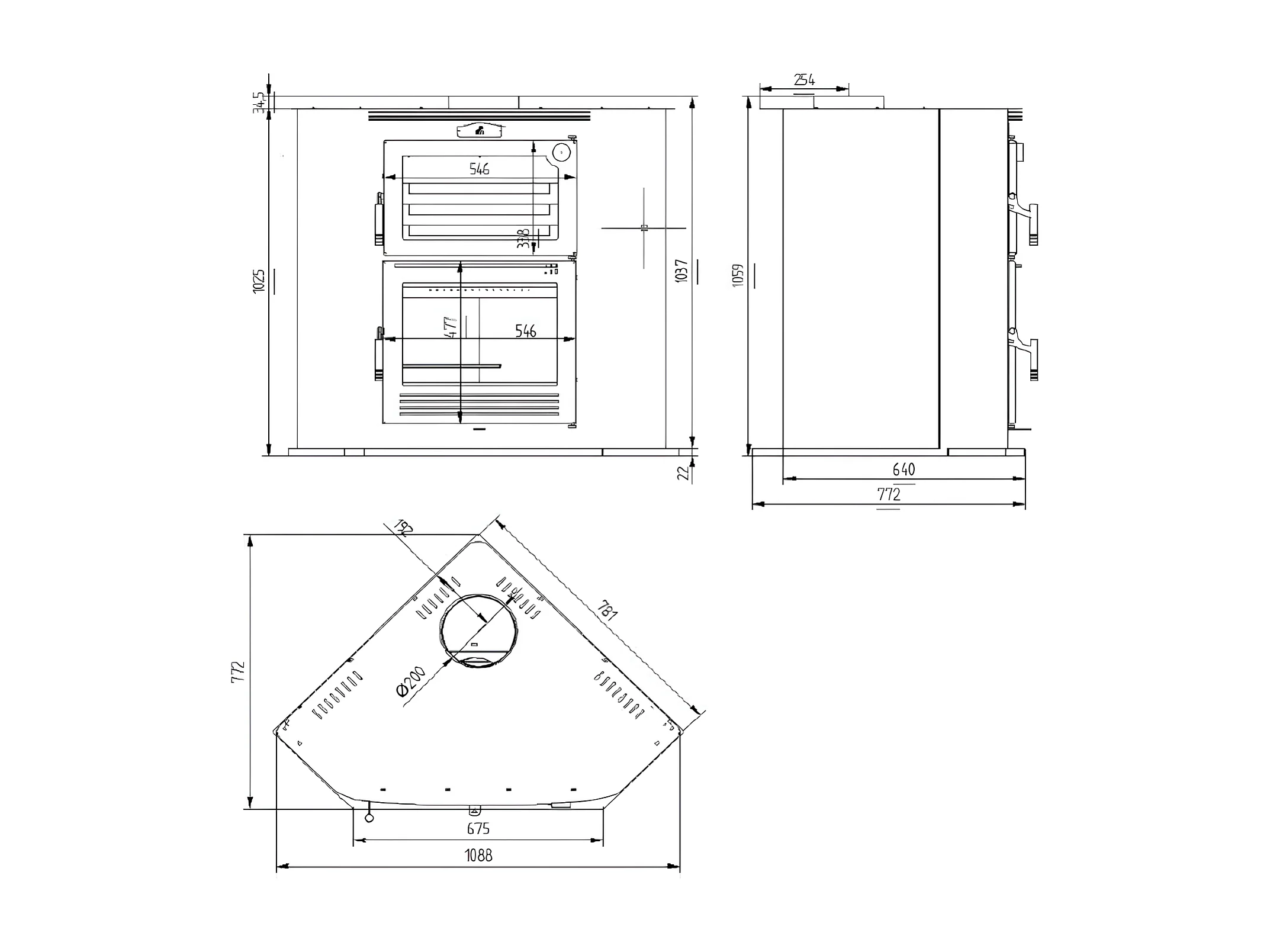 Four-poêle à bois de coin en acier- FeuZen - Intérieur en fonte