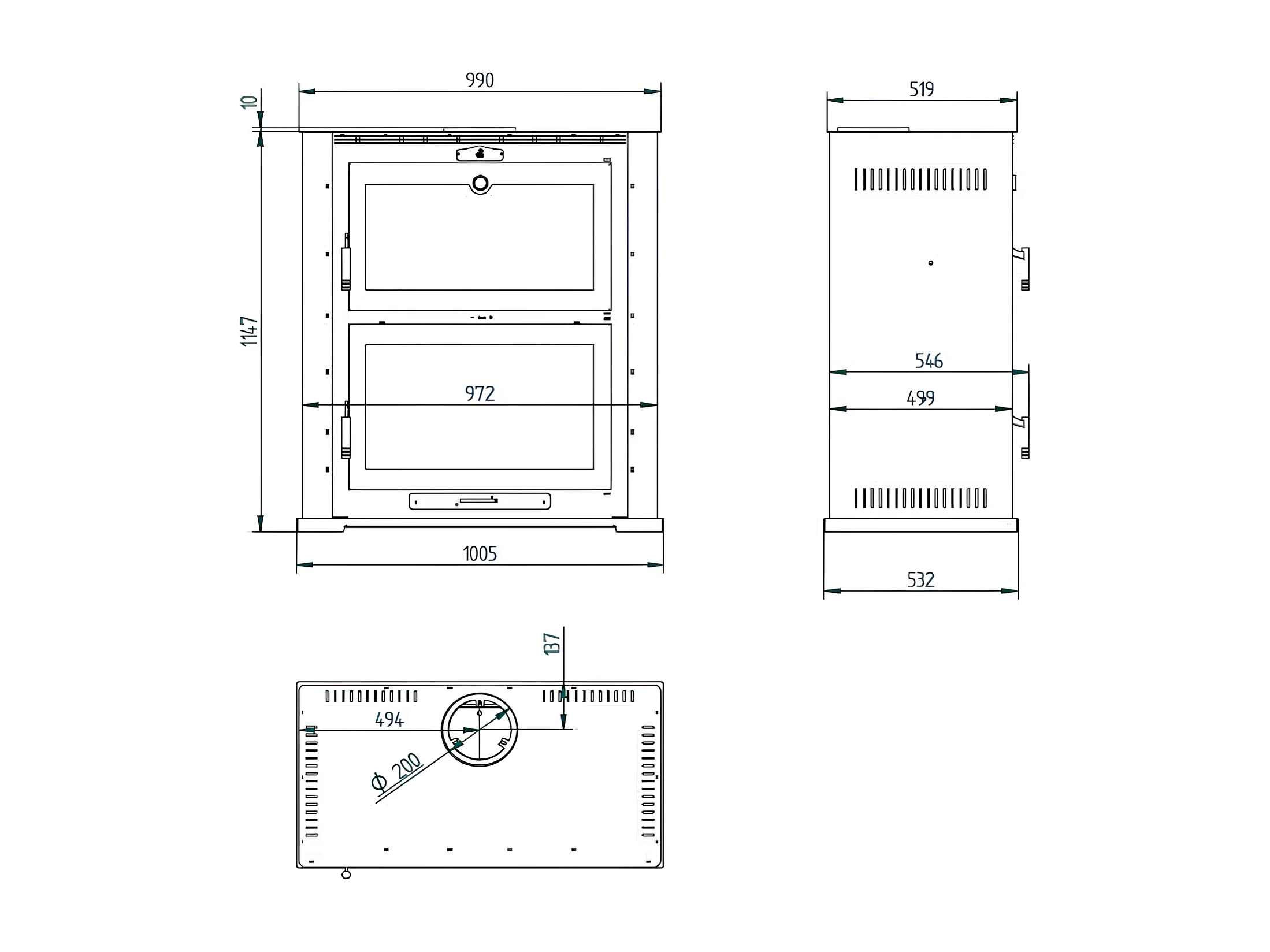 Four-poêle à bois en acier - Stellaire - Intérieur en fonte
