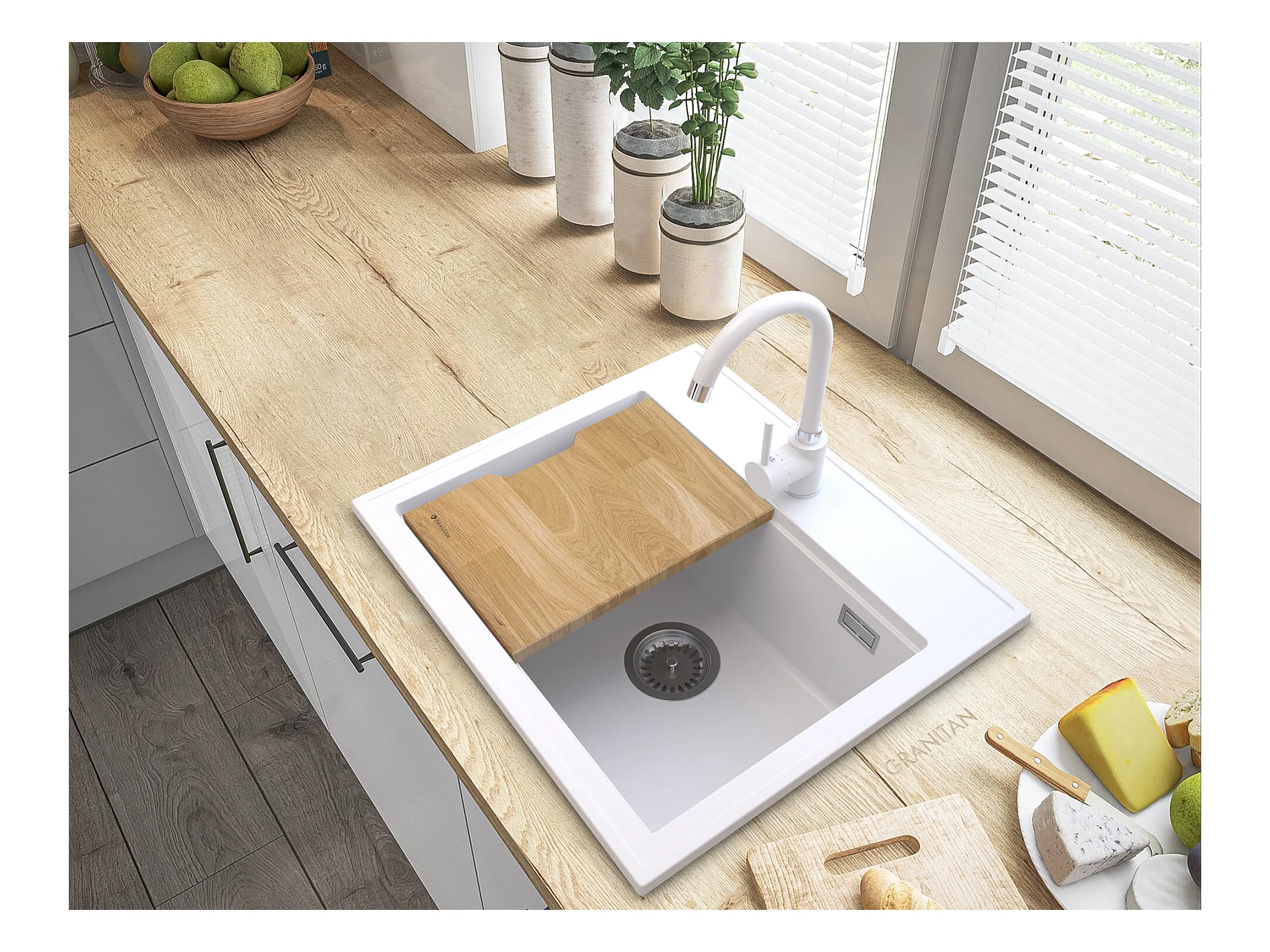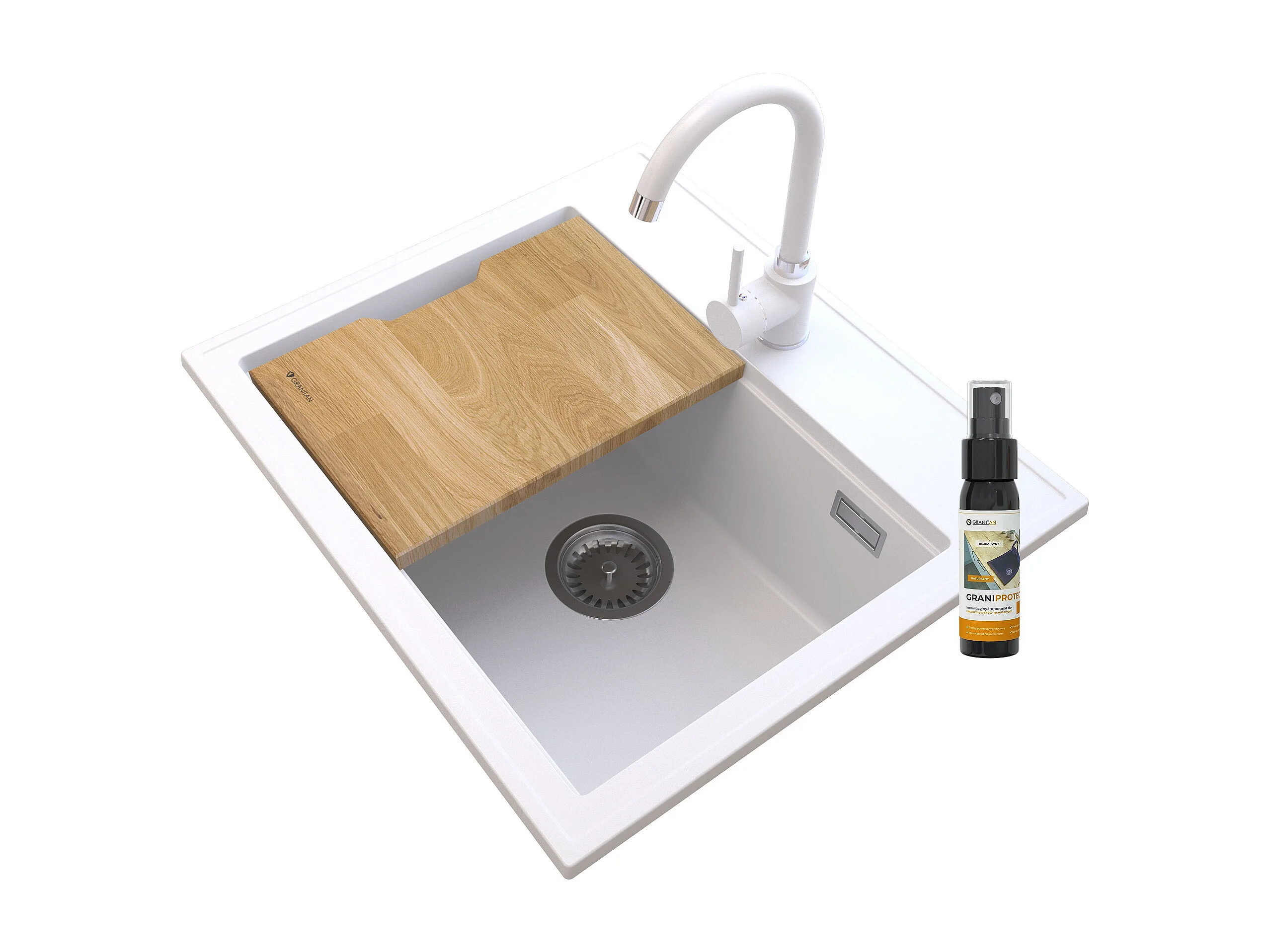 FOXAL ÉVIER EN GRANIT BLANC + MITIGEUR BLANC