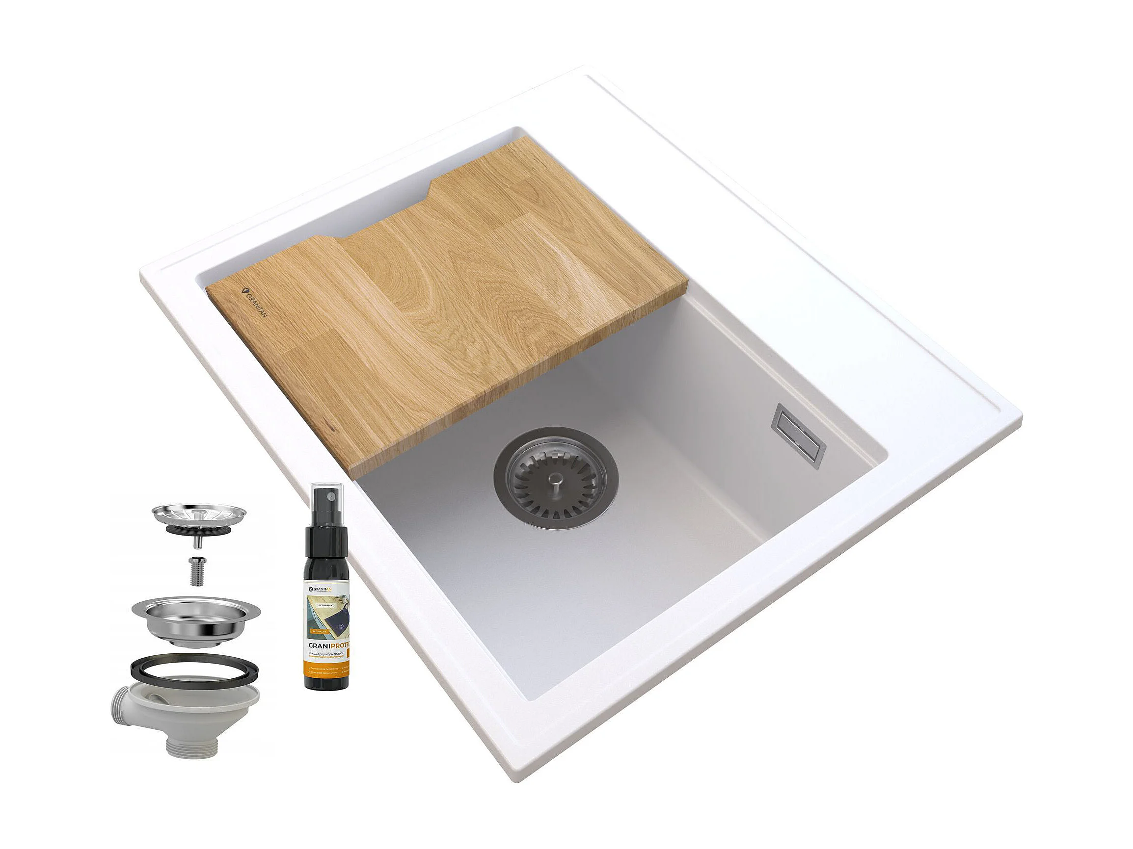 FOXAL ÉVIER EN GRANIT BLANC SIPHON CHROMÉ