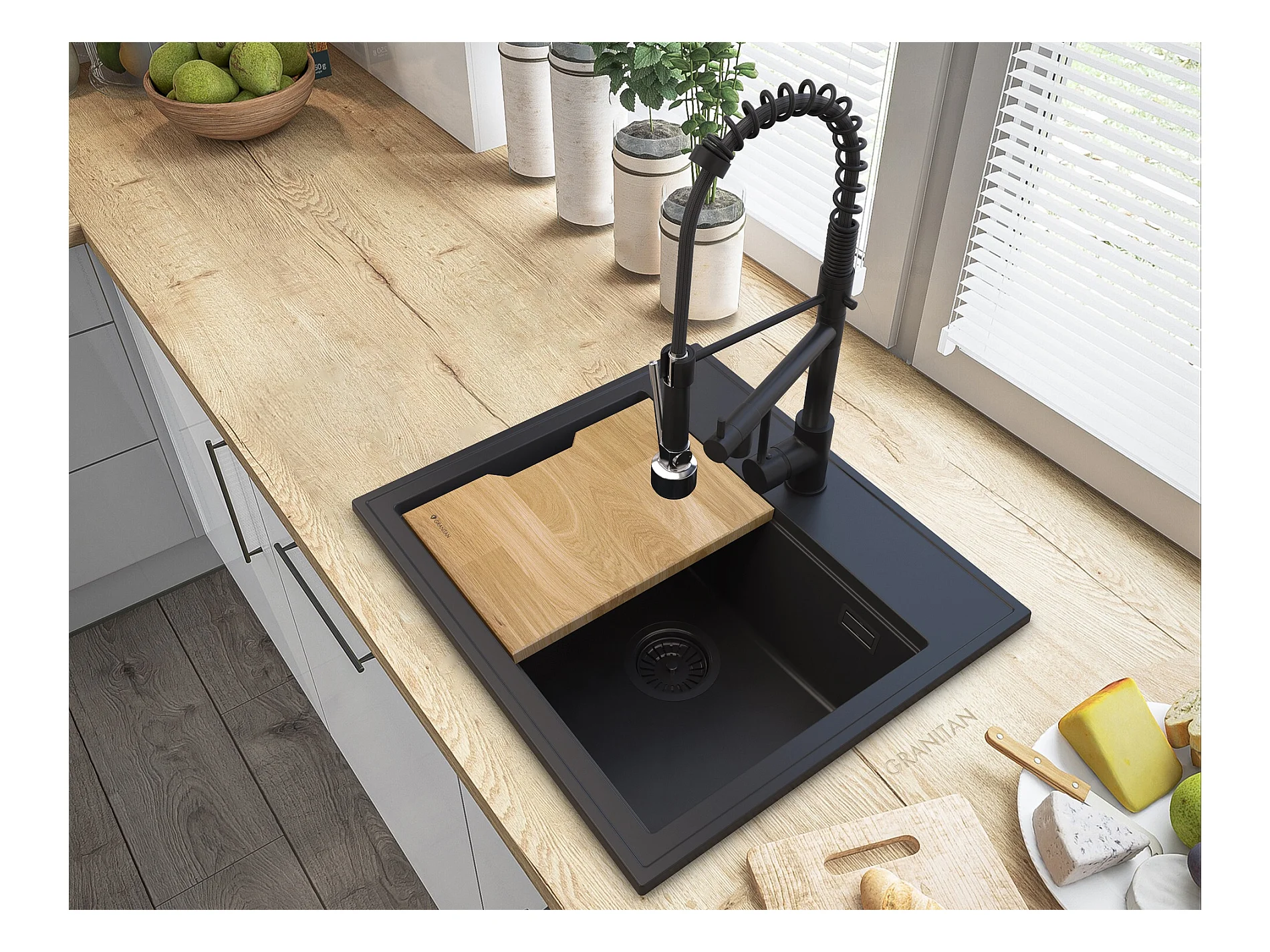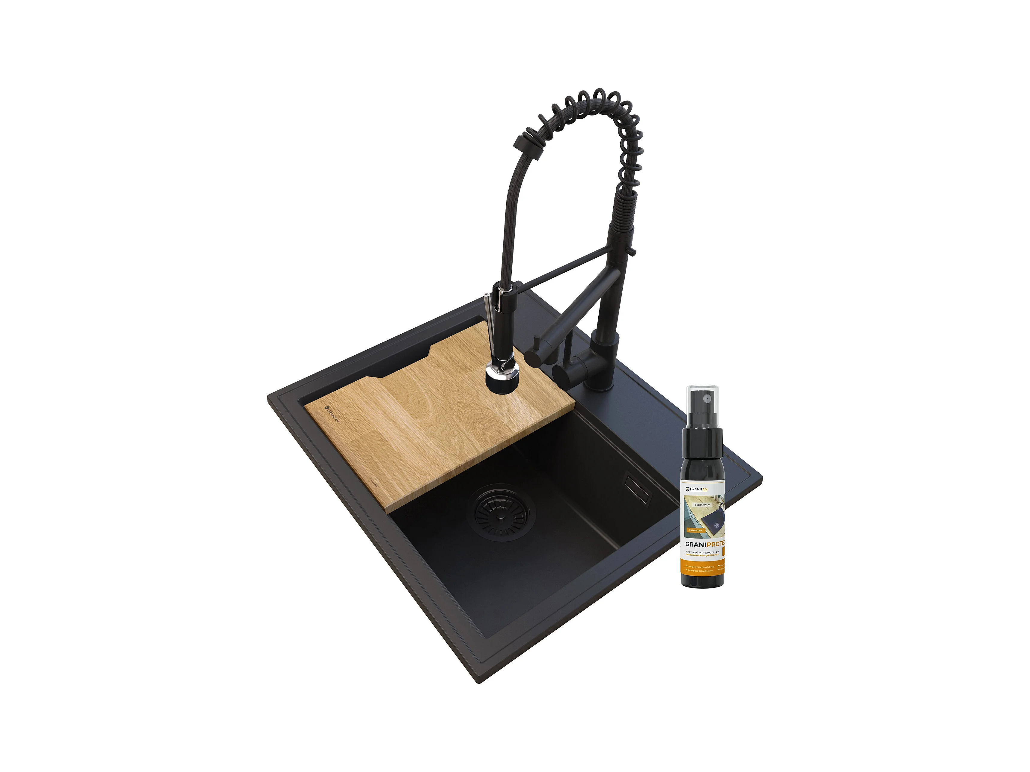 FOXAL ÉVIER EN GRANIT NOIR+MÉLANGEUR SPIRAL DUO NOIR
