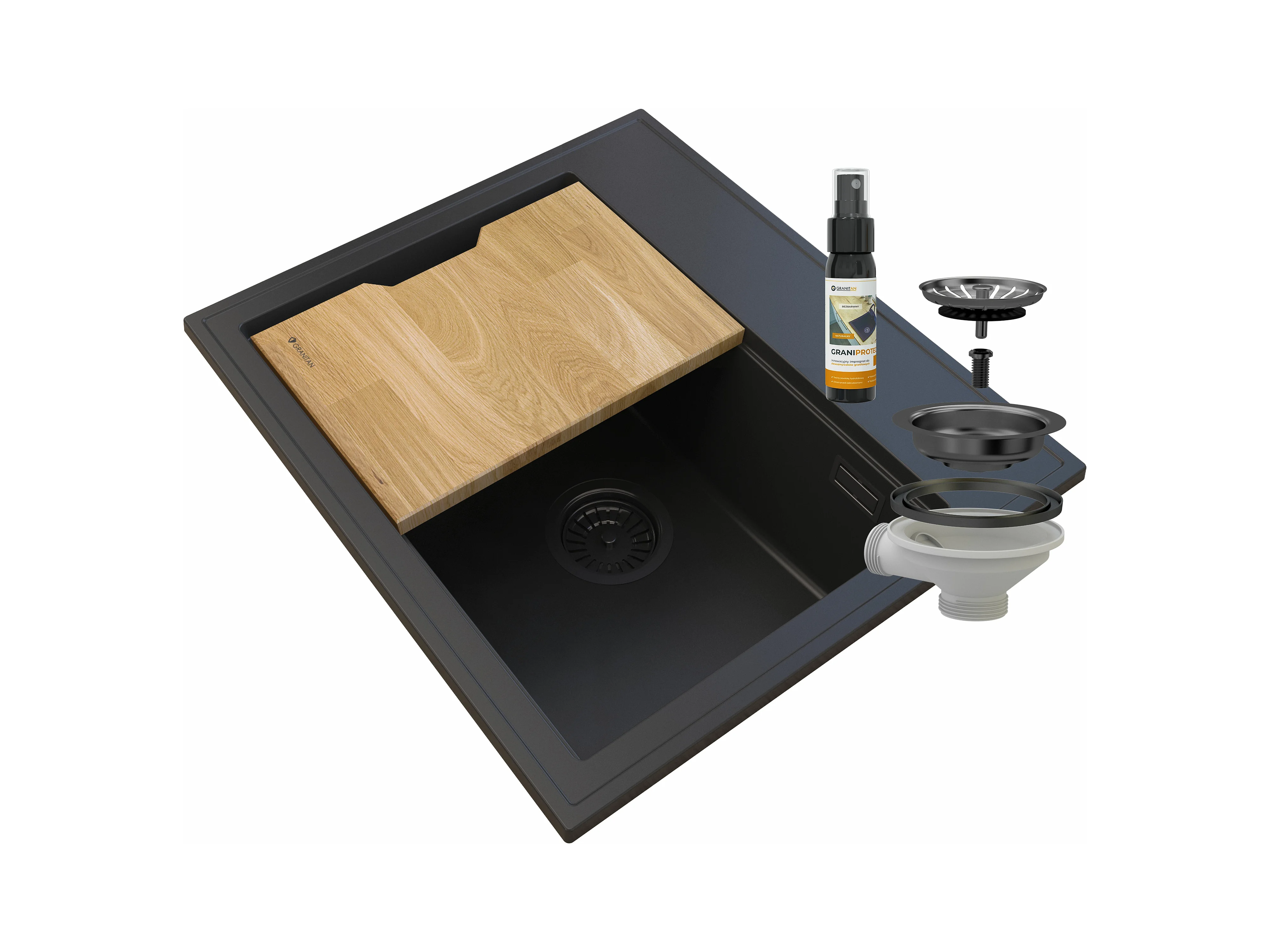 FOXAL ÉVIER EN GRANIT NOIR SIPHON NOIR