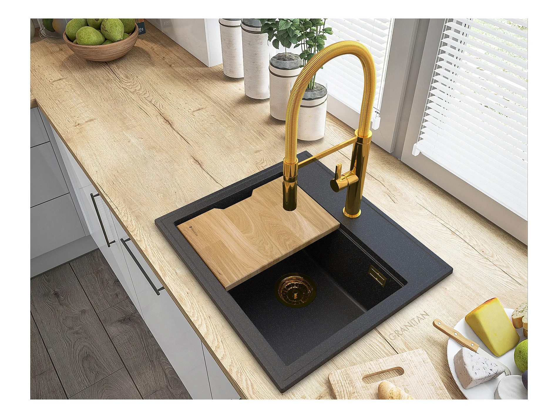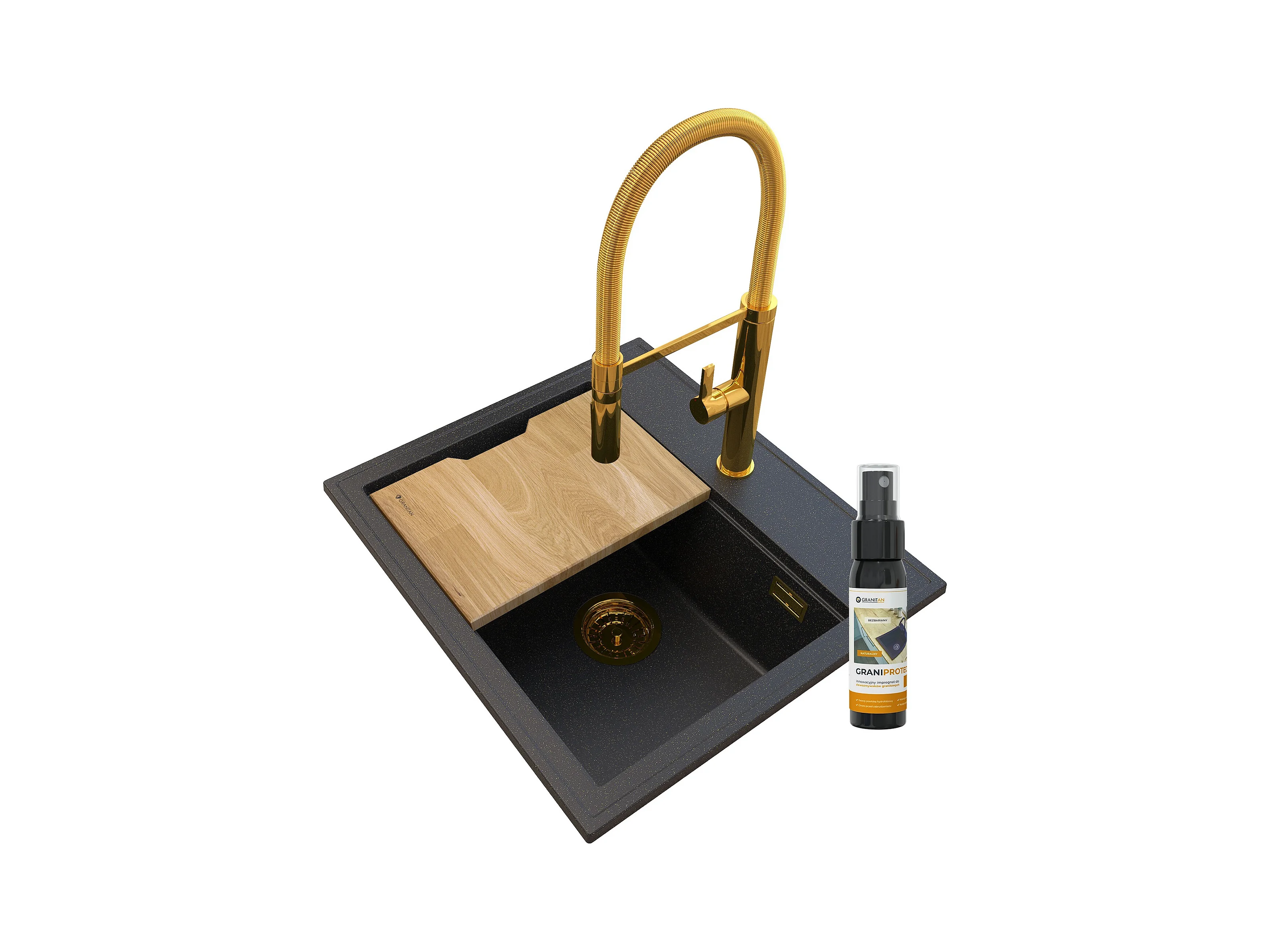 FOXAL GOLDEN LINE GRANITE ÉVIER+HIGH MIXER GOLD