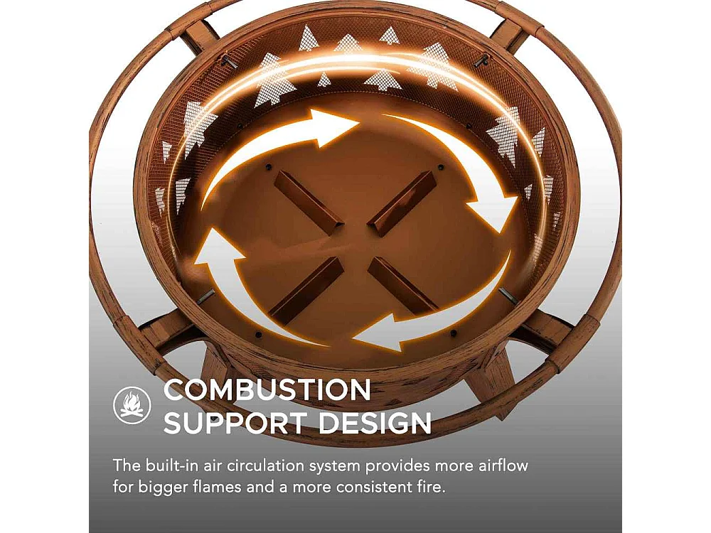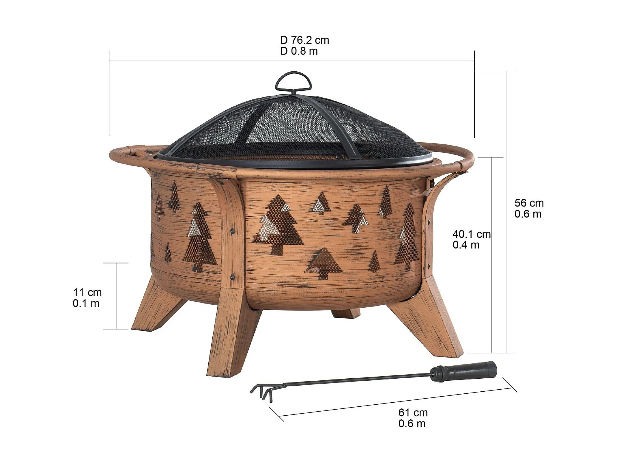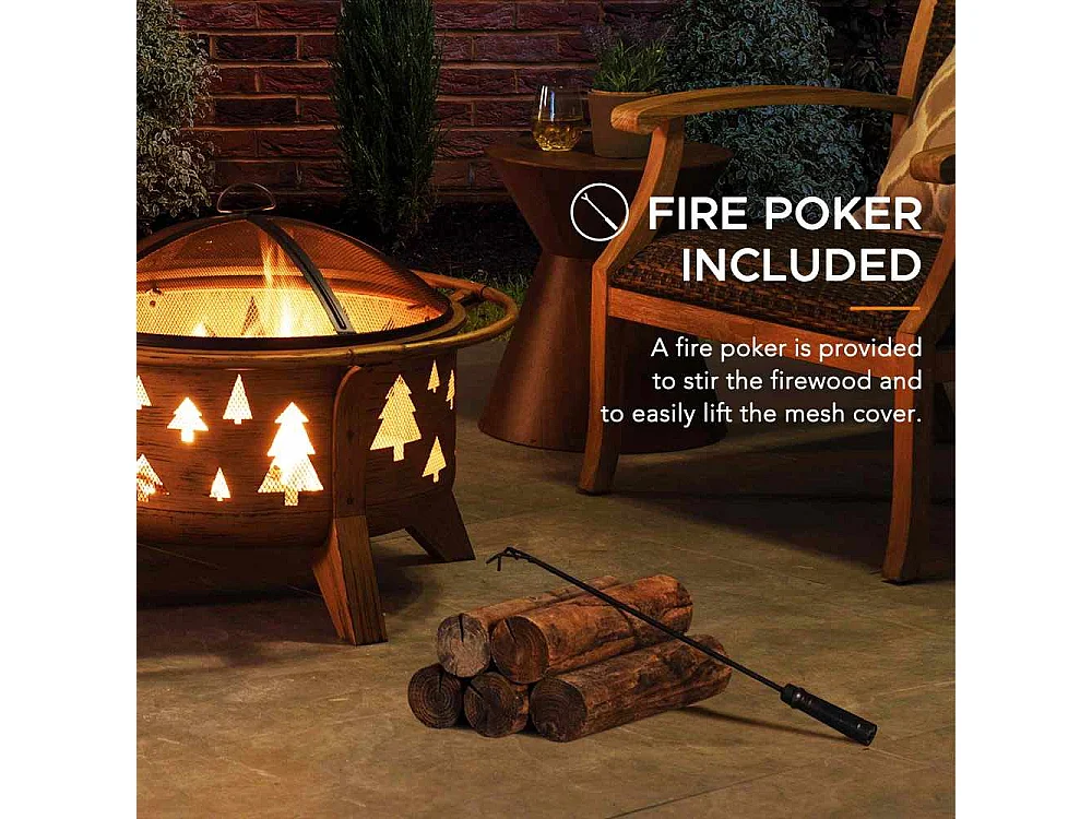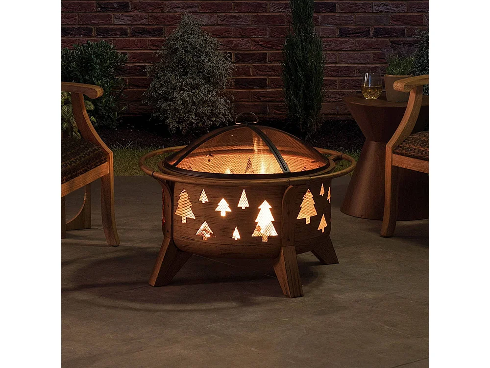 Foyer de Noël ASKJA 76 cm en acier cuivré avec pare-étincelles et tisonnier - Motif arbre