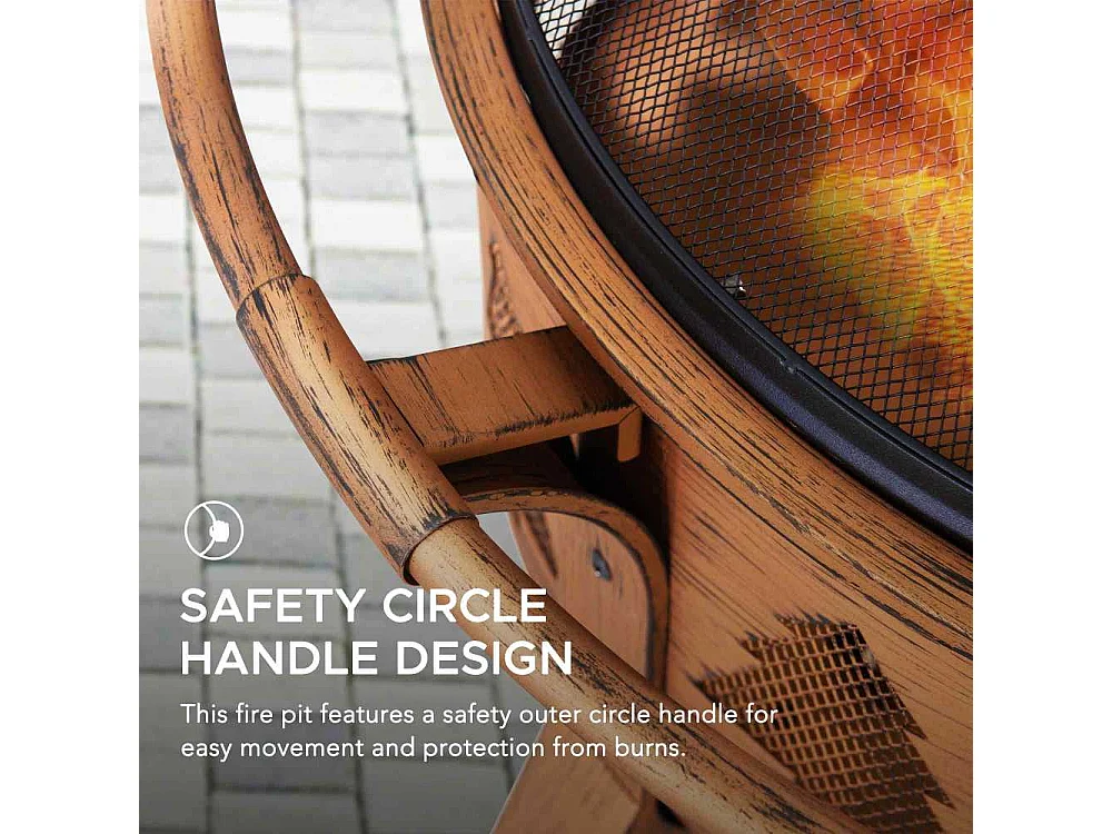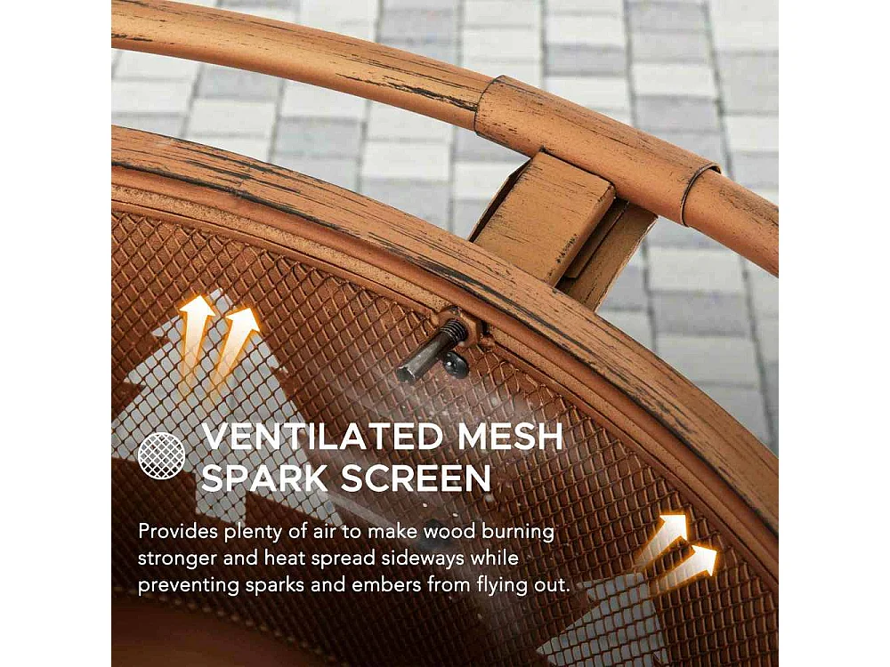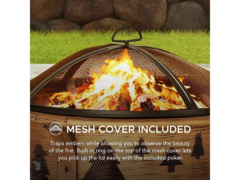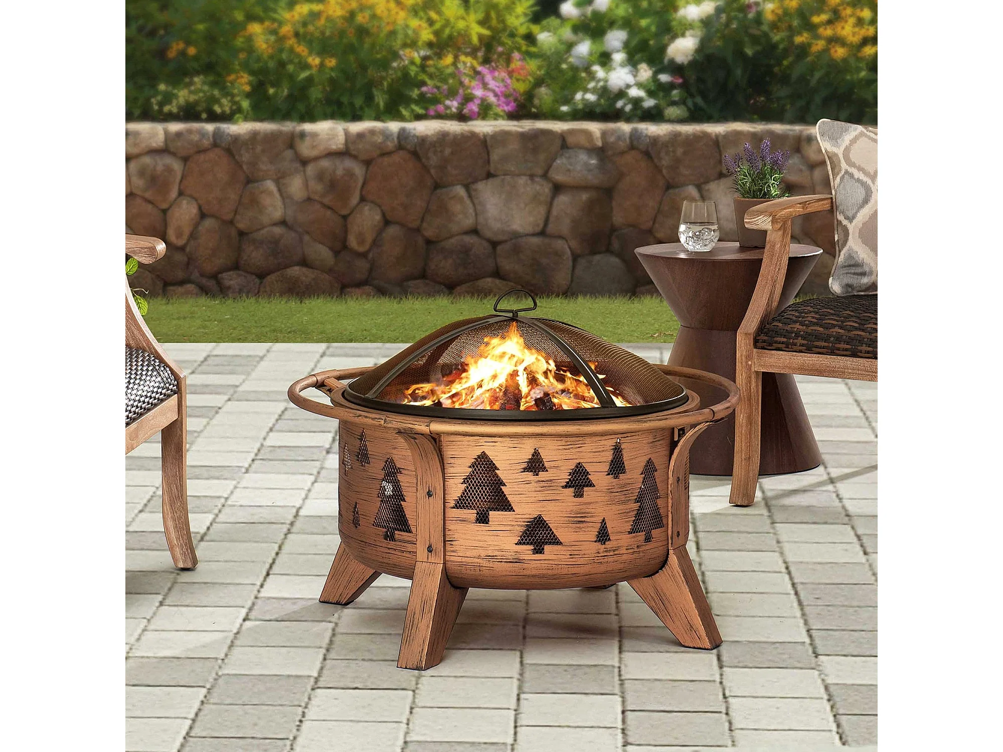 Foyer de Noël ASKJA 76 cm en acier cuivré avec pare-étincelles et tisonnier - Motif arbre