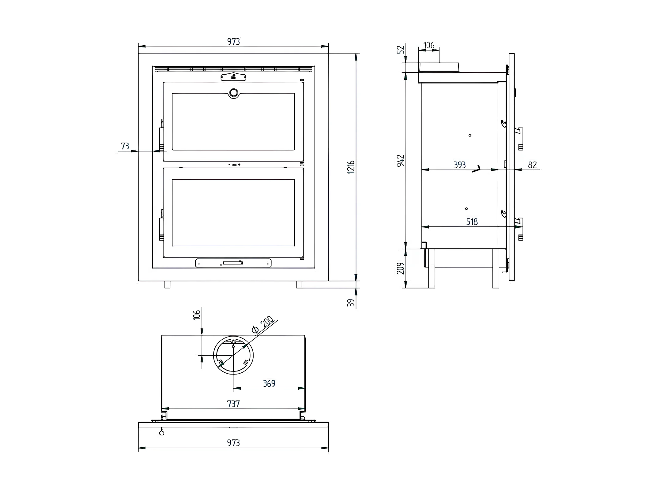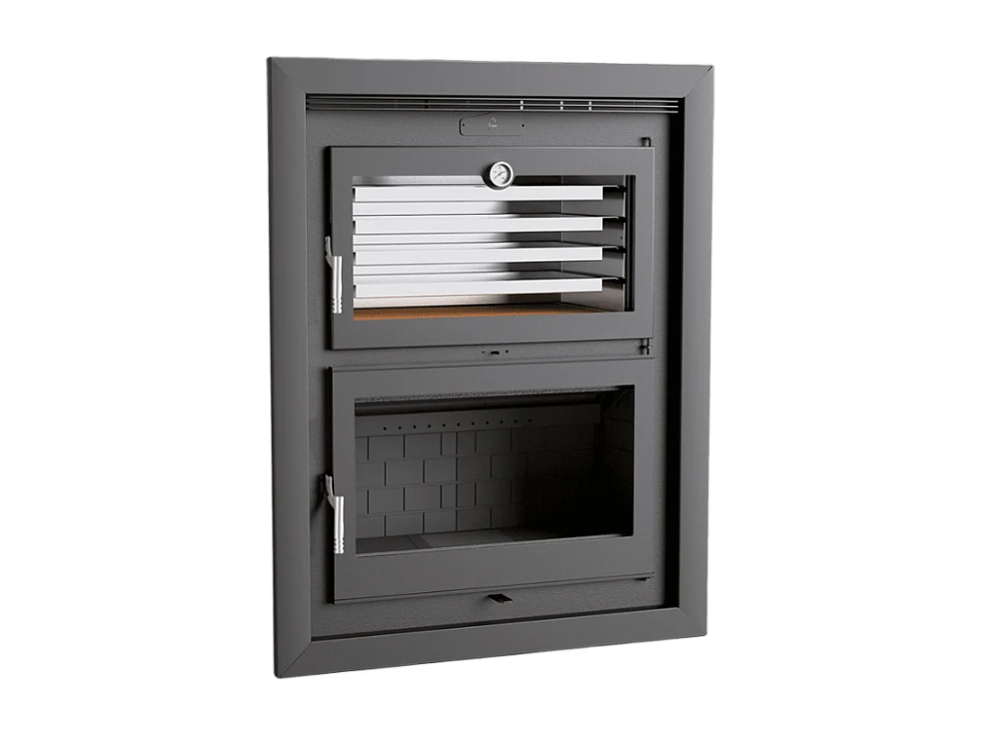 Foyer-poêle à bois en acier, encastrable - Thermix - Intérieur en fonte