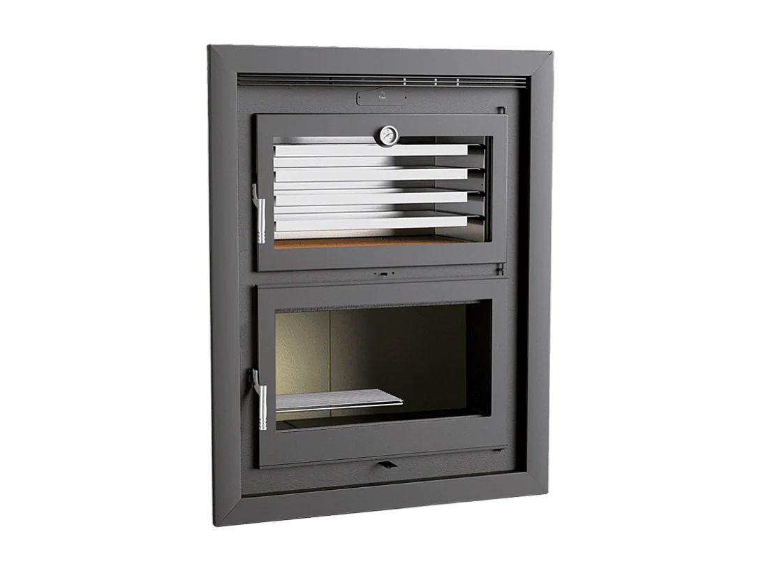 Foyer-poêle à bois en acier, encastrable - Thermix - Intérieur en vermiculite