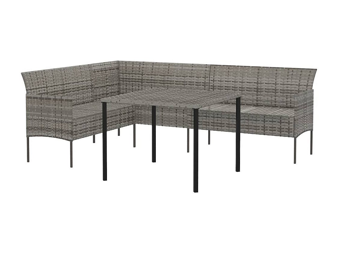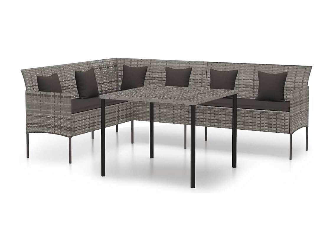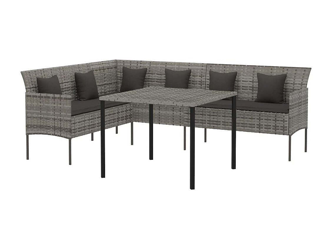 François-Antoine-Paul Ensemble à manger de jardin et coussins 2 pcs gris rotin