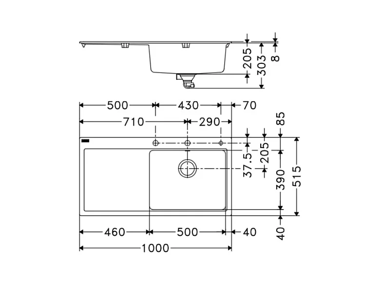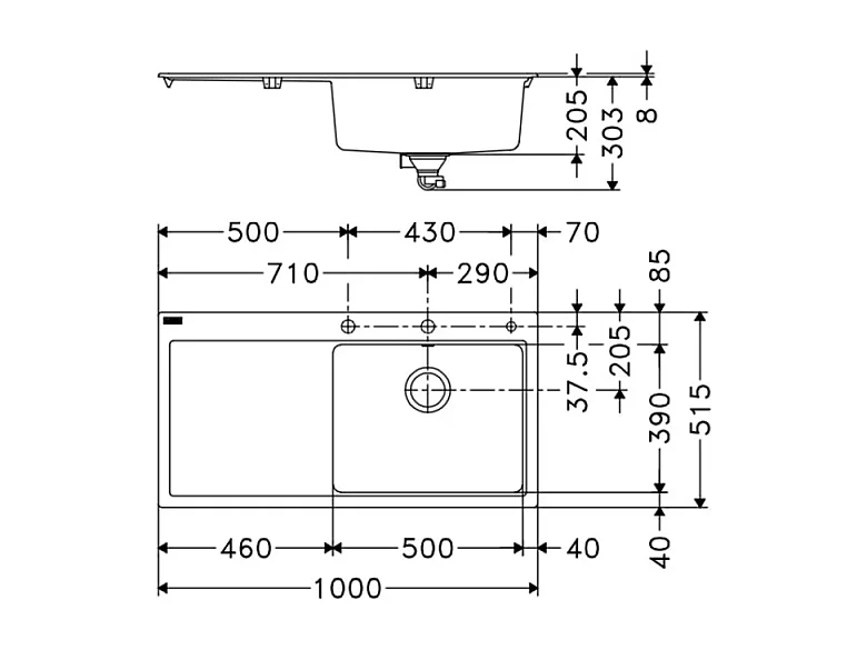 Franke - Evier Fragranit 100 X 51,5 cm 1 cuve 1 égoutoir gauche Mythos