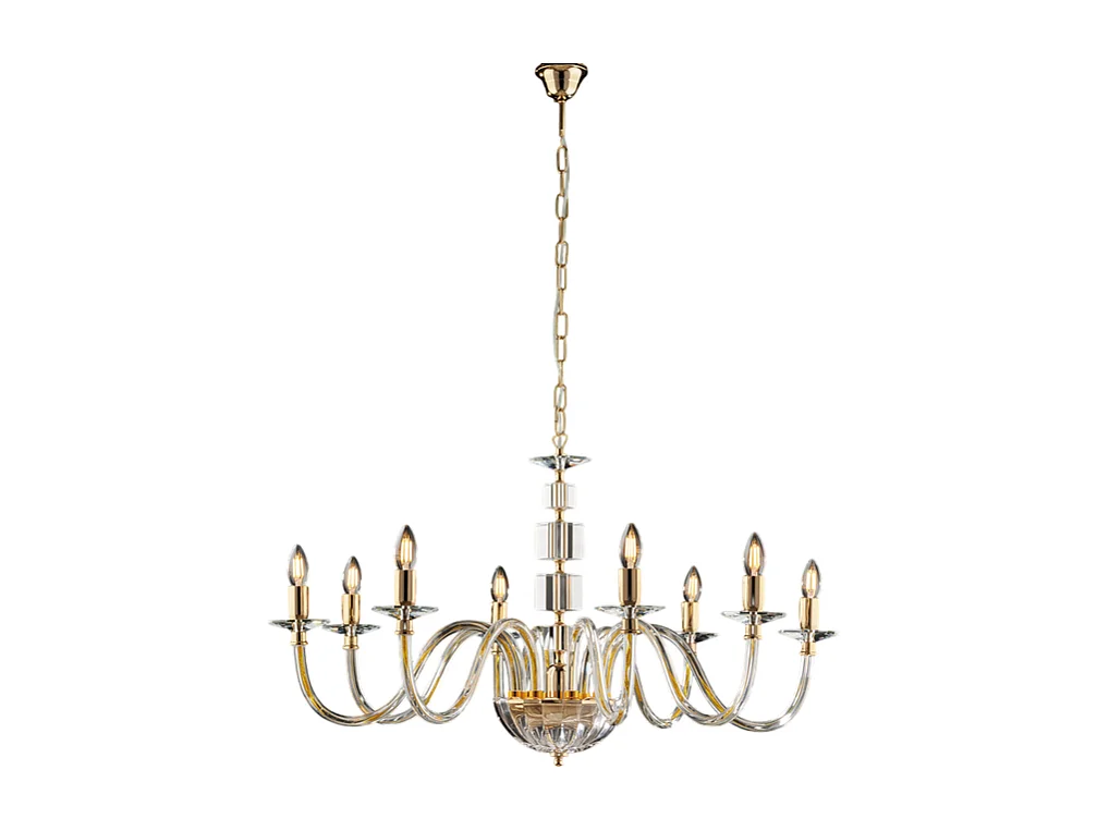 Franz Lustre doré verre transparent et strass 8 lumières 116 d.96 BL275-8-OR