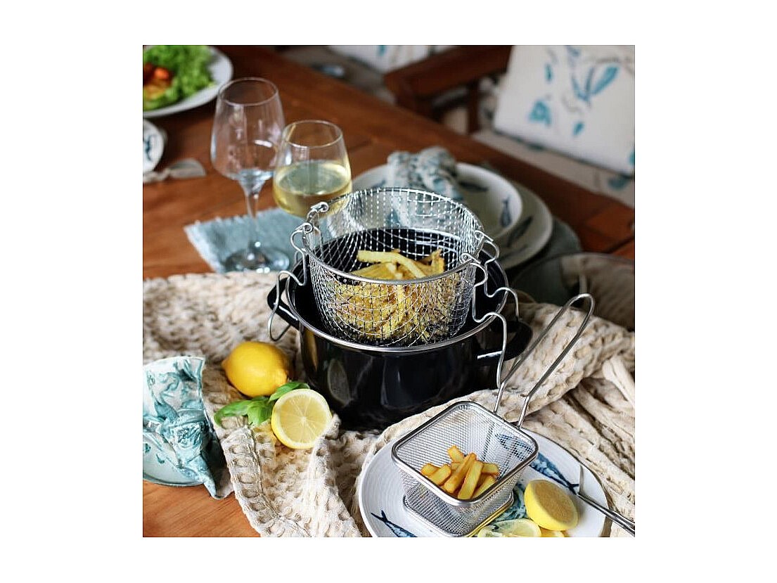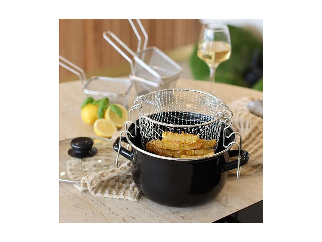 Menastyl - Friteuse 20cm Email Noire Avec Panier Inox