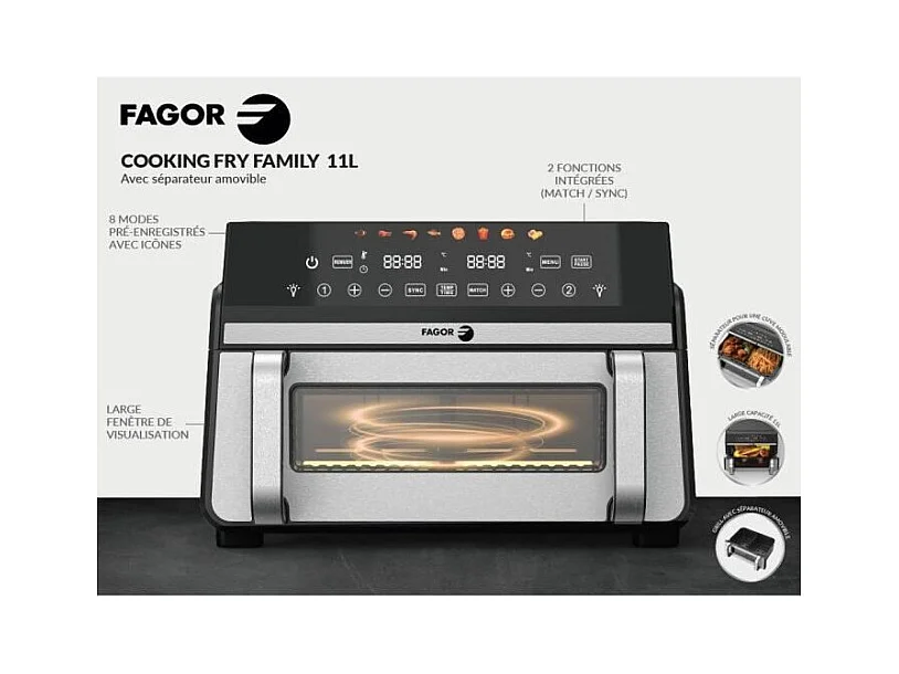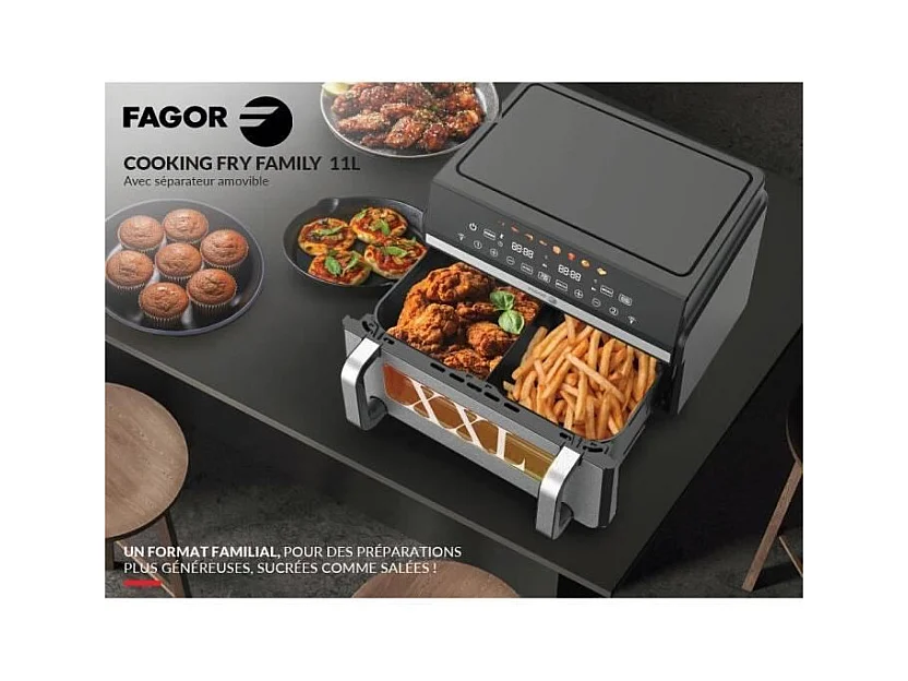 Friteuse sans huile FAGOR - Airfryer FG10AF - Capacité 11L - Double cuves 5,5L - Séparateur amovible - 2200W