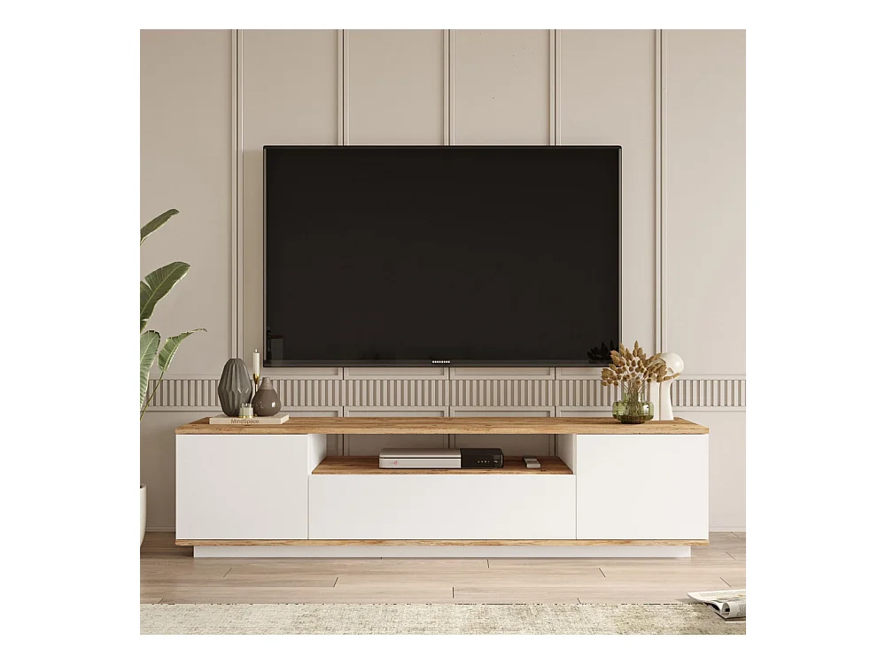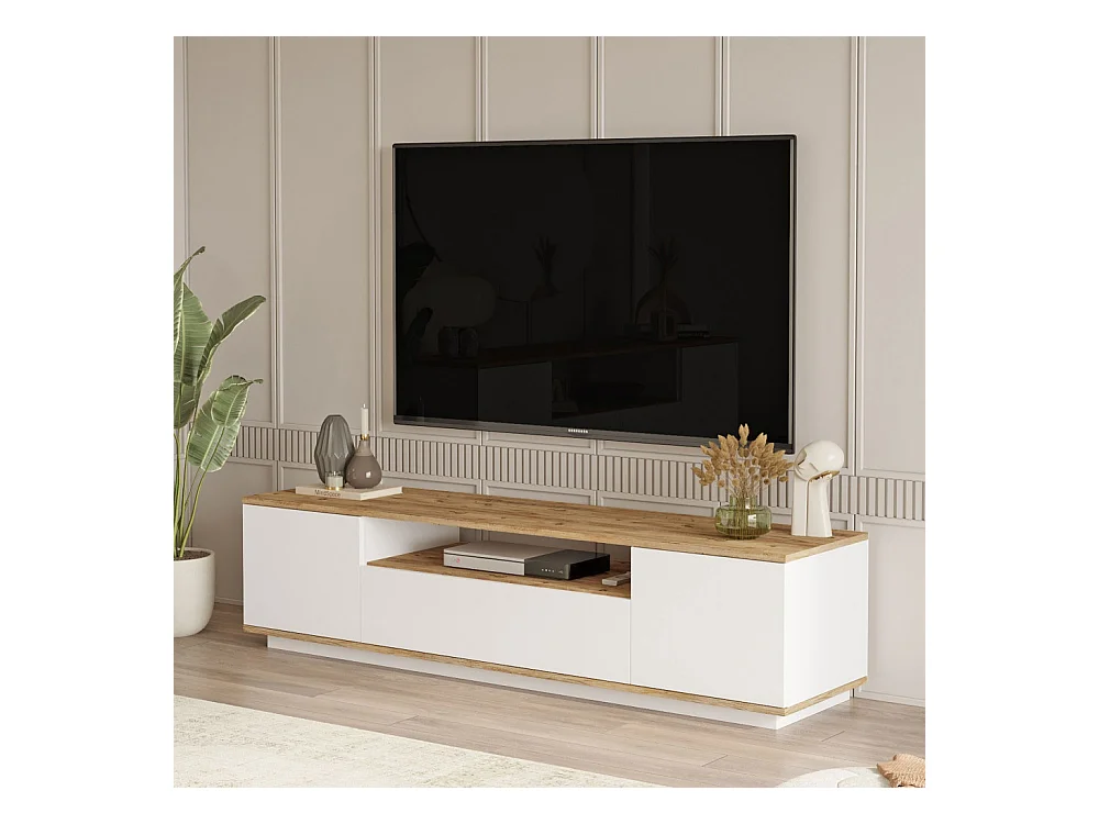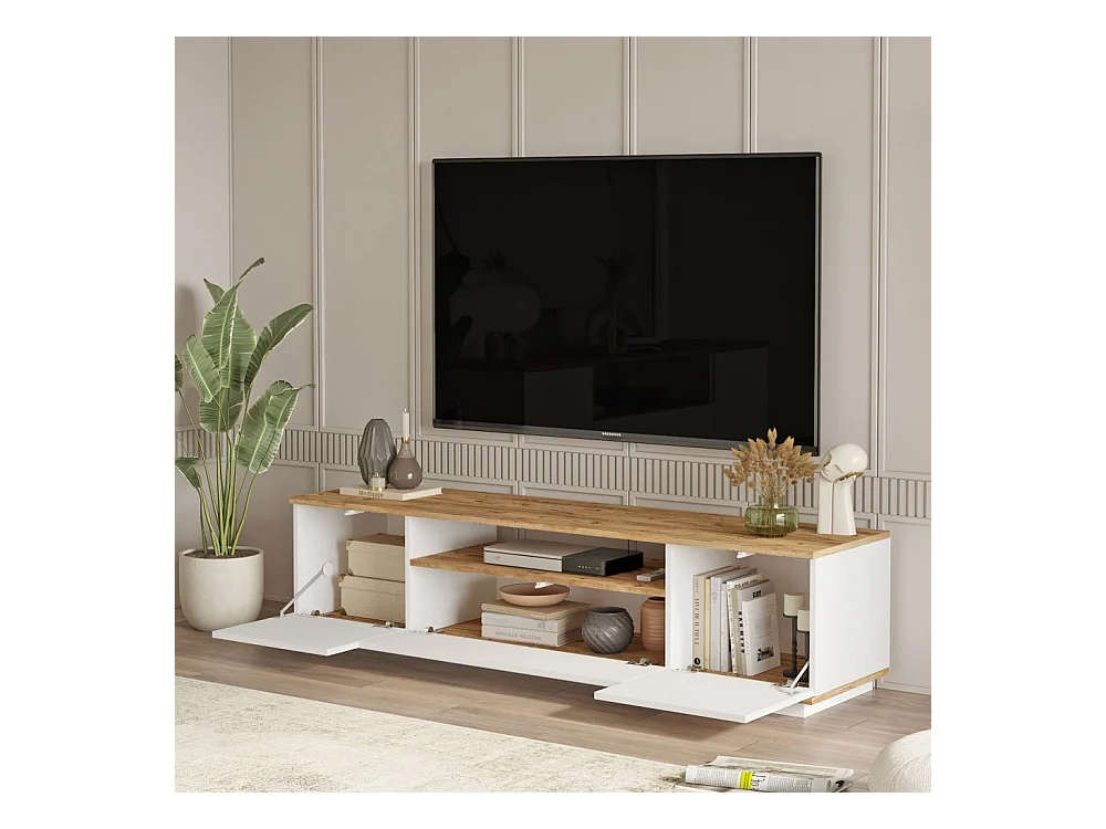 Fritz - Meuble TV 3 portes en bois L180cm - Blanc