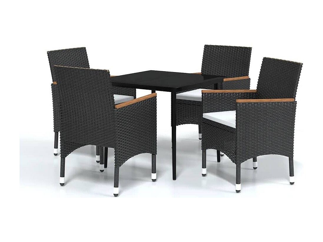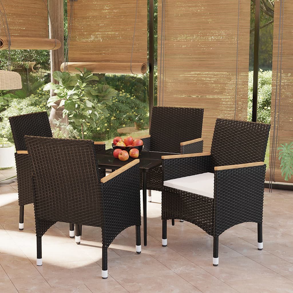 Frynjal Ensemble à manger de jardin avec coussins 5 pcs Noir