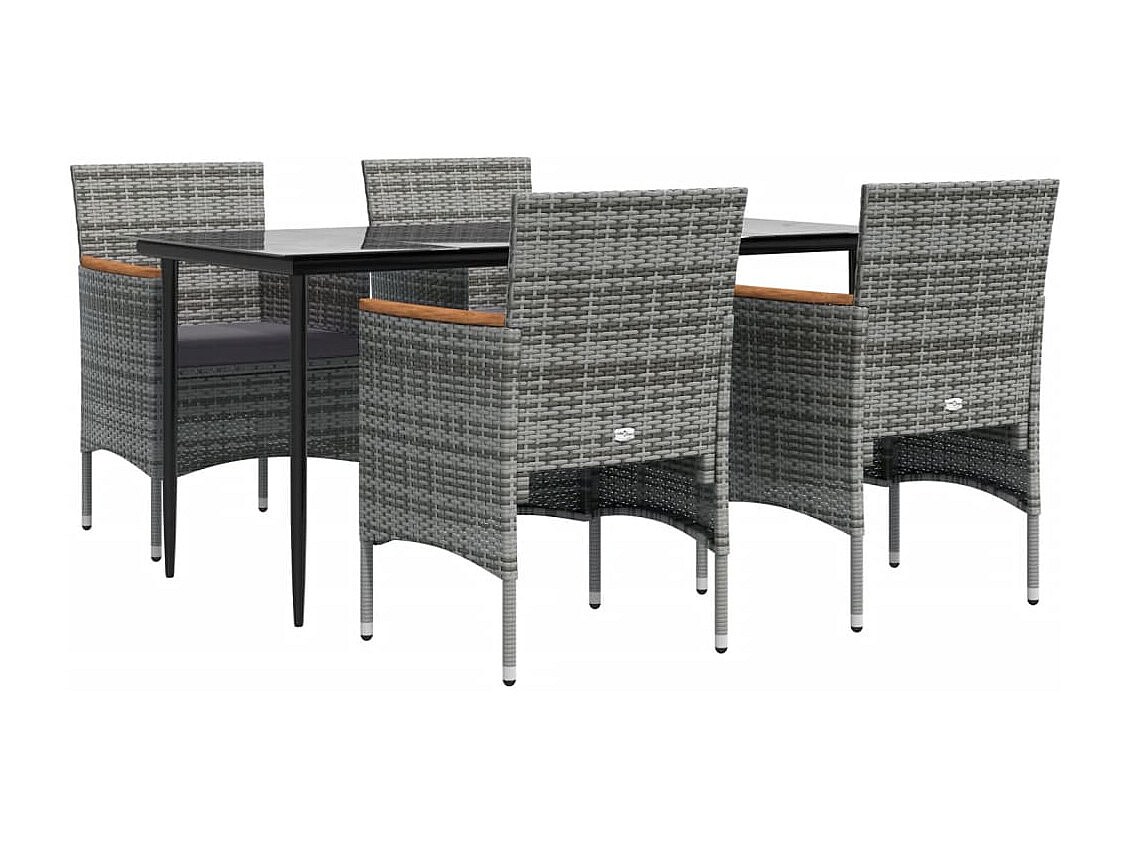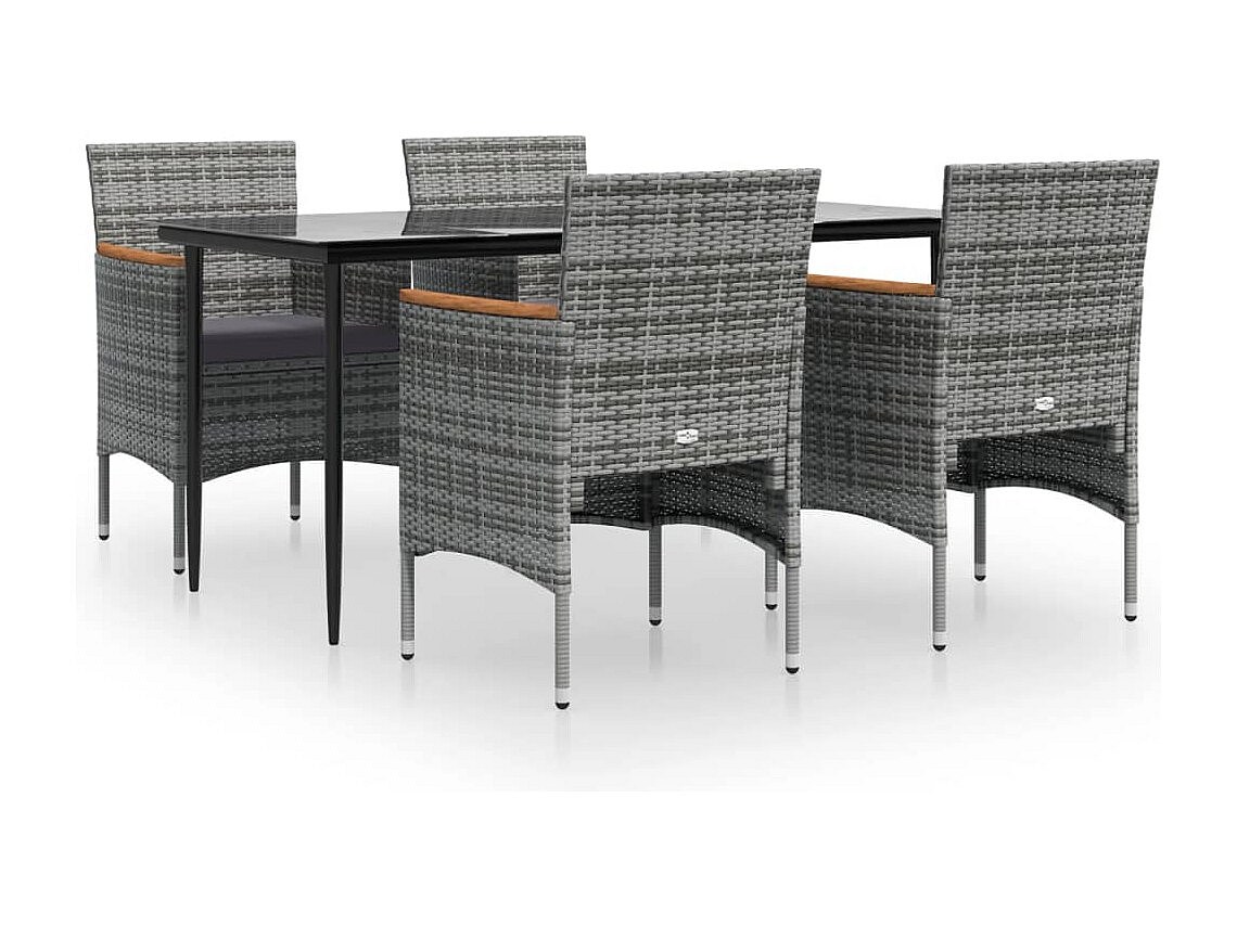 Frynjal Ensemble à manger de jardin et coussins 5pcs Gris/noir