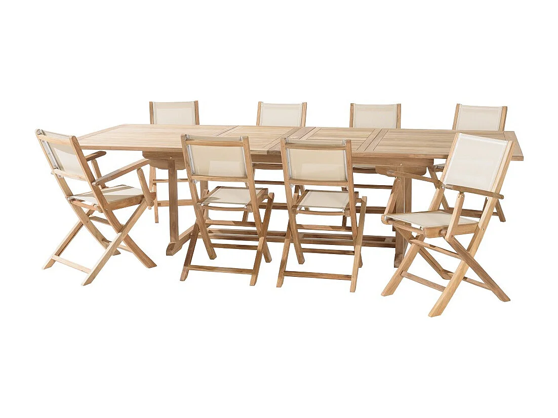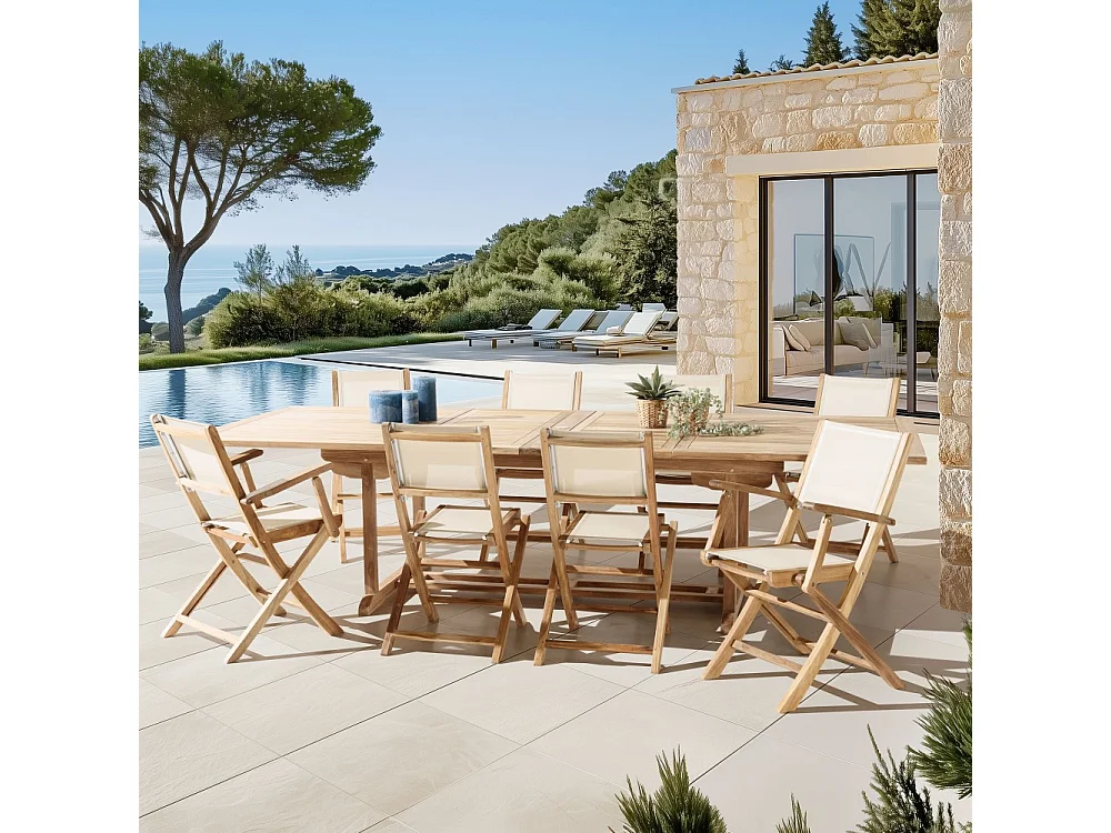 FUN - Ensemble de jardin en bois teck et textilène 10/12 personnes