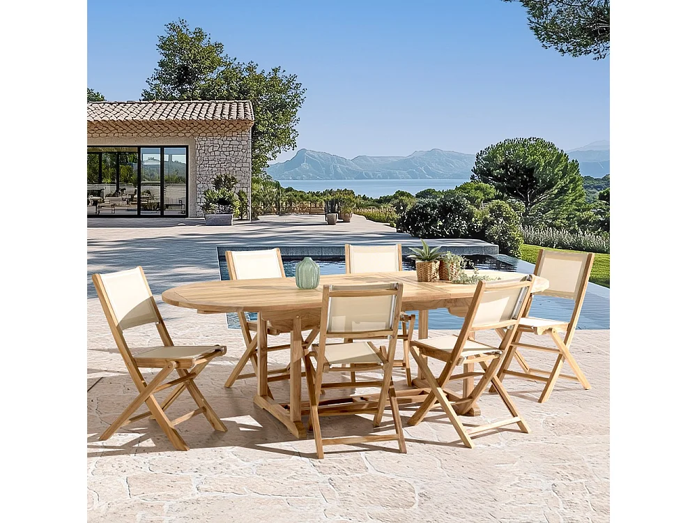 FUN - Ensemble de jardin en bois teck et textilène 8/10 personnes
