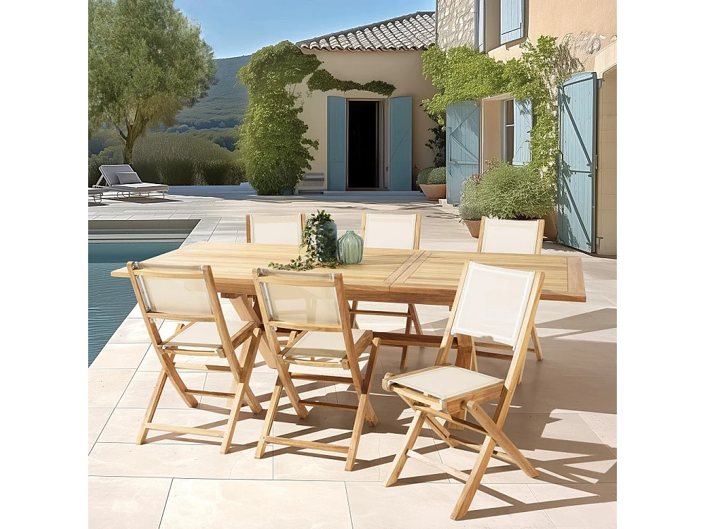 FUN - Ensemble de jardin en bois teck et textilène 8/10 personnes