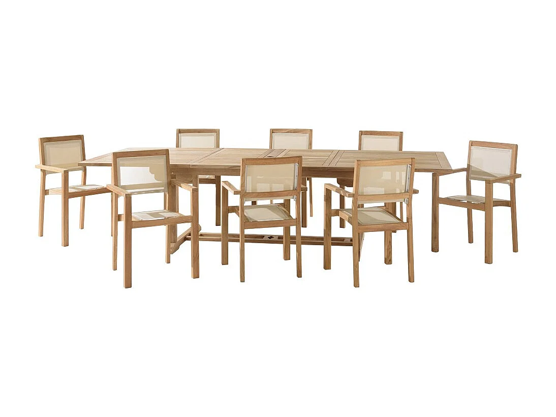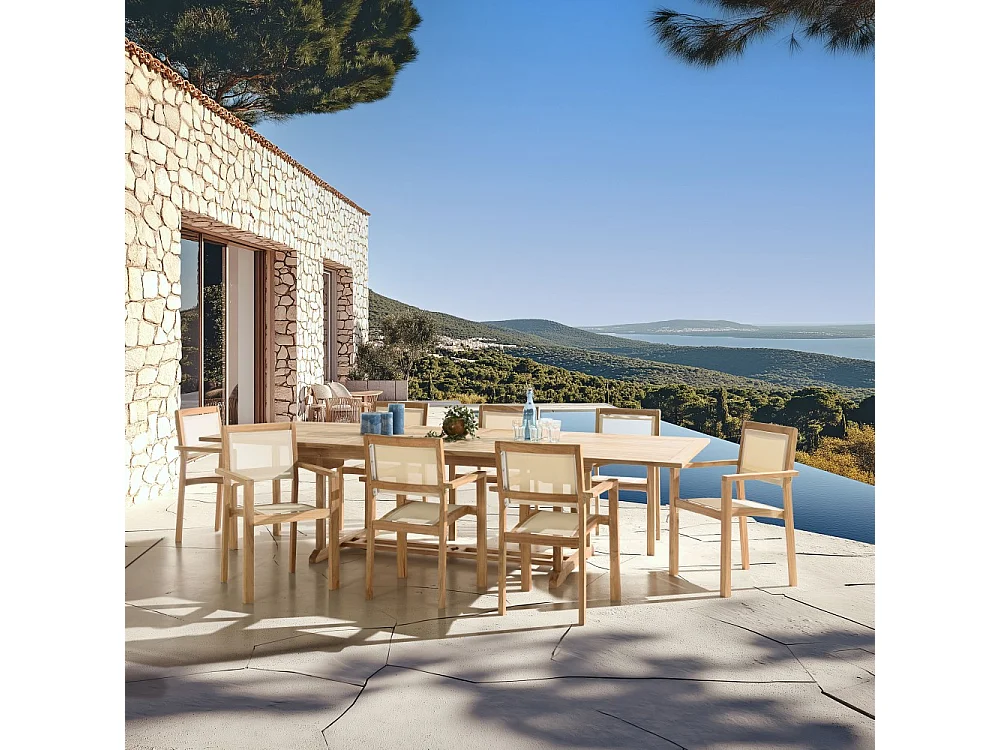 FUN - Ensemble de jardin en bois teck et textilène 10/12 personnes