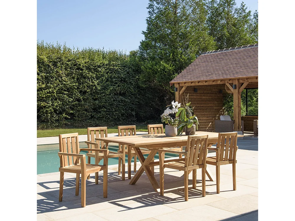 FUN - Salon de jardin en bois teck 8/10 personnes