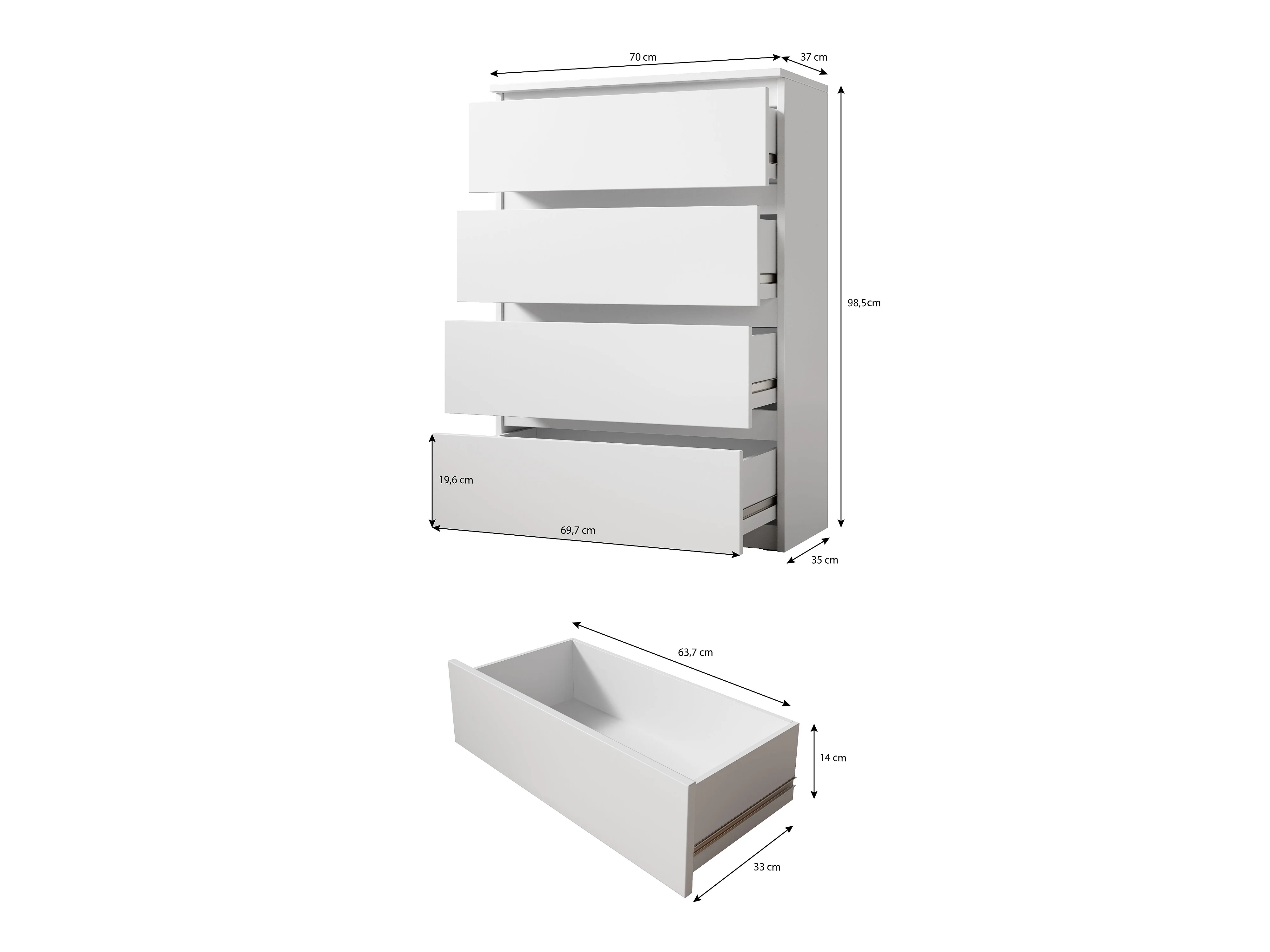 FURNIX commode/ meuble de rangement Arenal avec 4 tiroirs 70 x 37 x 98 cm noir mat style moderne