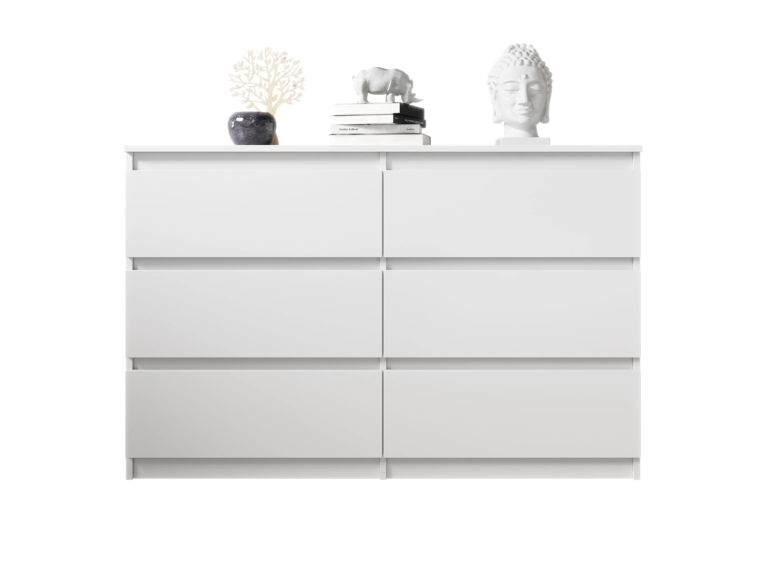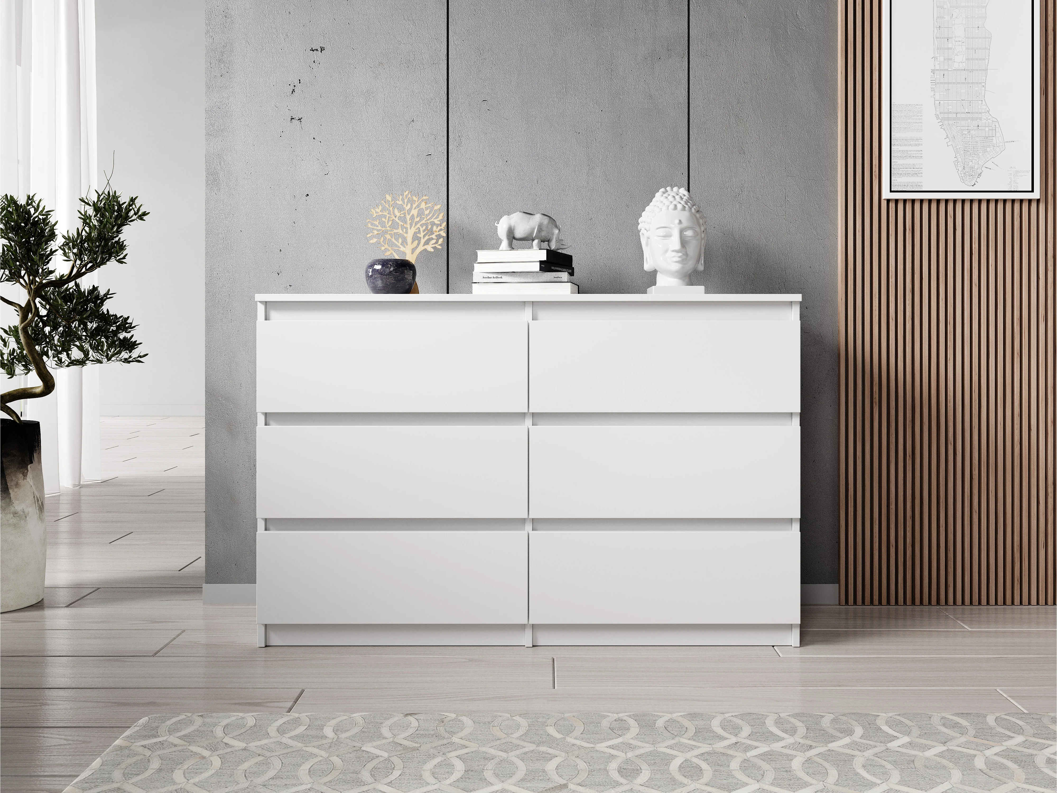 FURNIX commode/ meuble de rangement Arenal avec 6 tiroirs 119 x 35 x 77 cm blanc style moderne