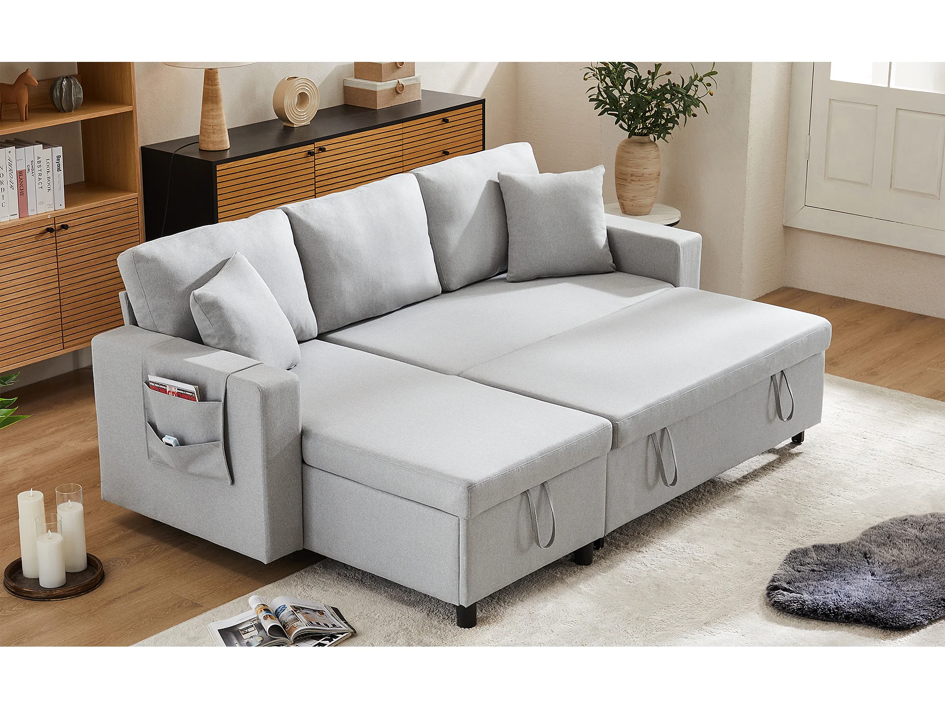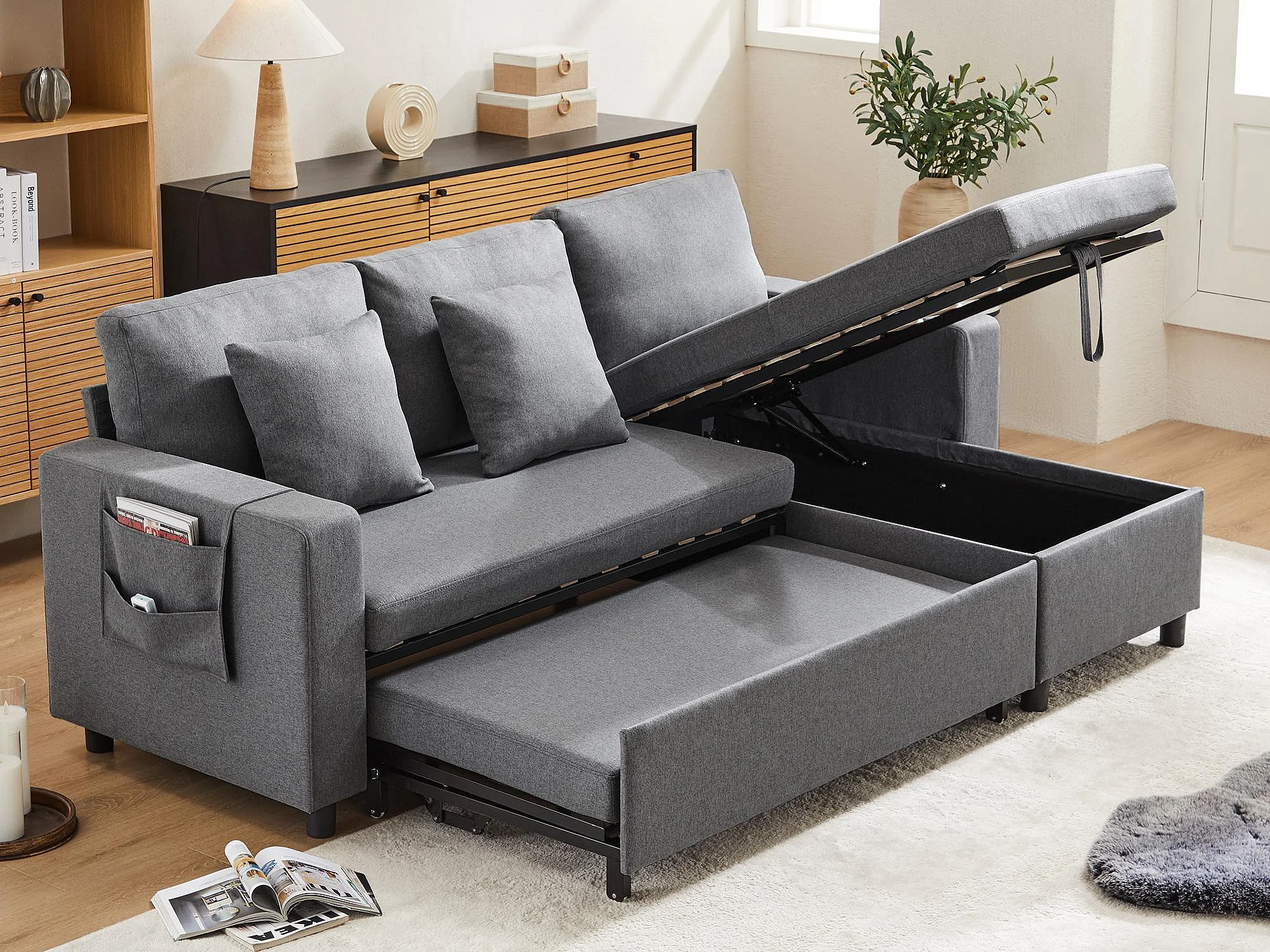 Fusio 1.0 - Canapé d’Angle 3 Places Convertible + Rangement - Tissu Lin - Idéal Studio, Lit d’Appoint Spacieux