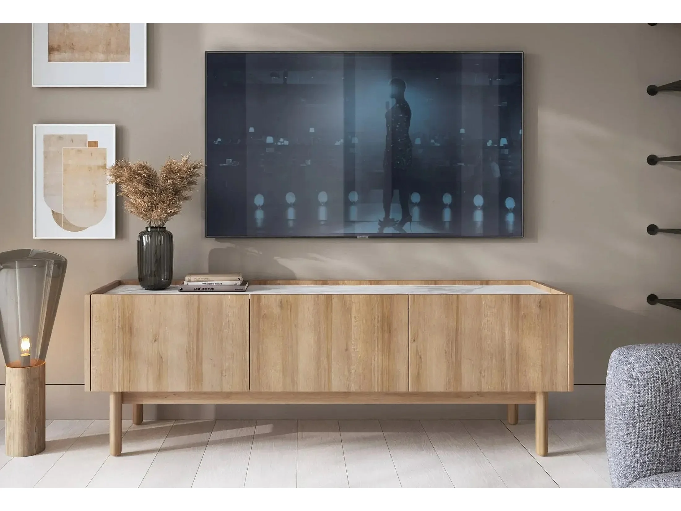 GABIN - Meuble TV 3 portes 140cm - Beige