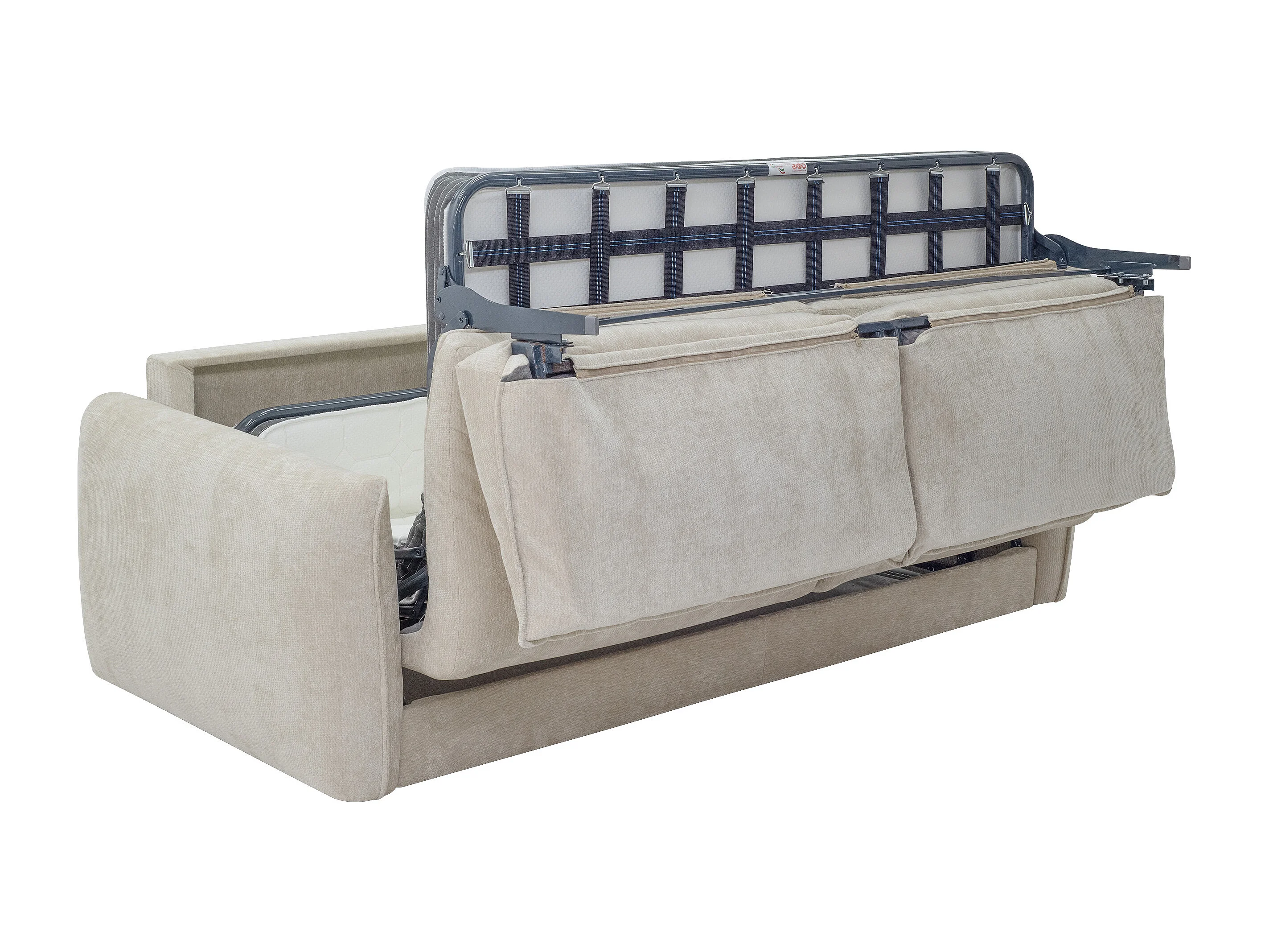 Canapé 4 places convertible express en tissu texturé beige - Couchage 160 cm - Matelas 16 cm mémoire de forme GABRIZA