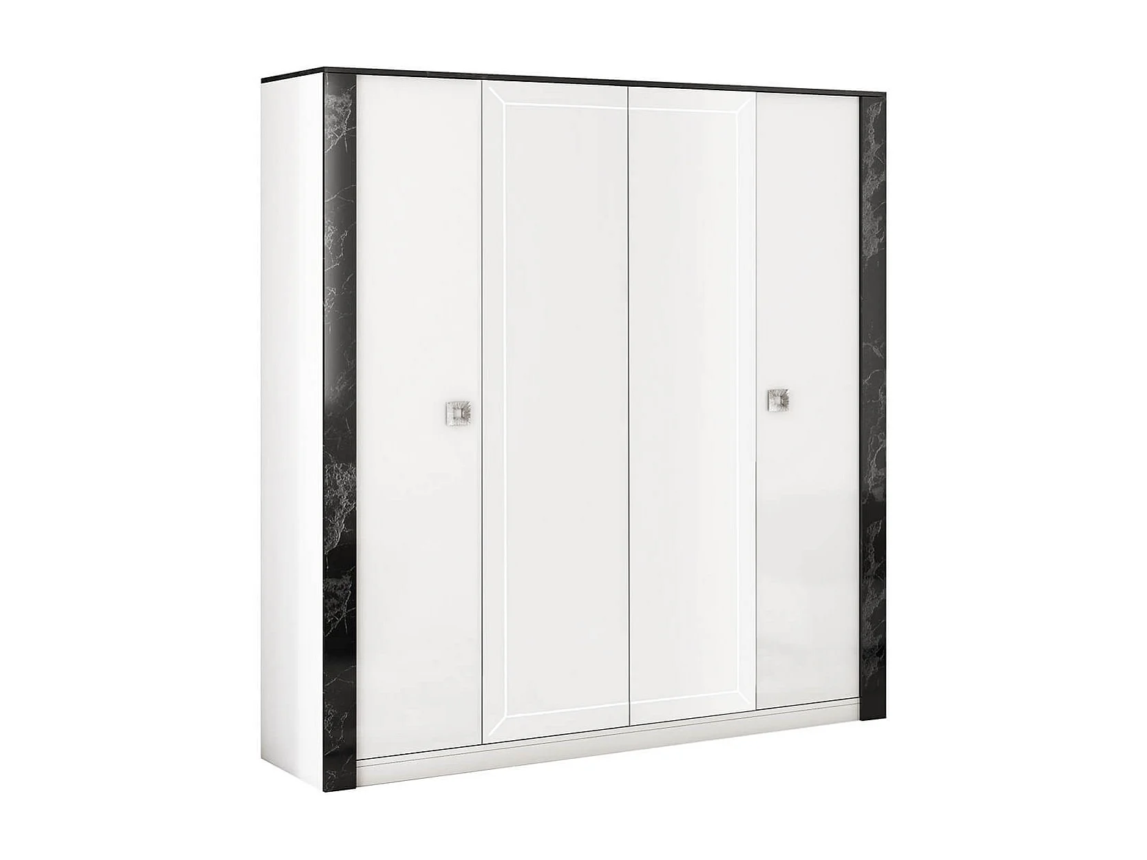 GAÏA - Chambre Lit 160x200 cm + Chevets + Commode + Armoire Laquée Blanc avec Décor Noir
